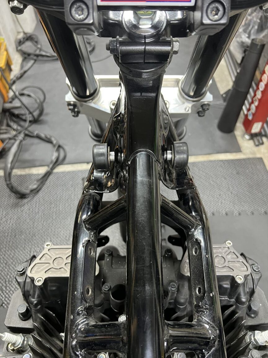 続いてタンク上げ加工です。フロントのピンは削除します。