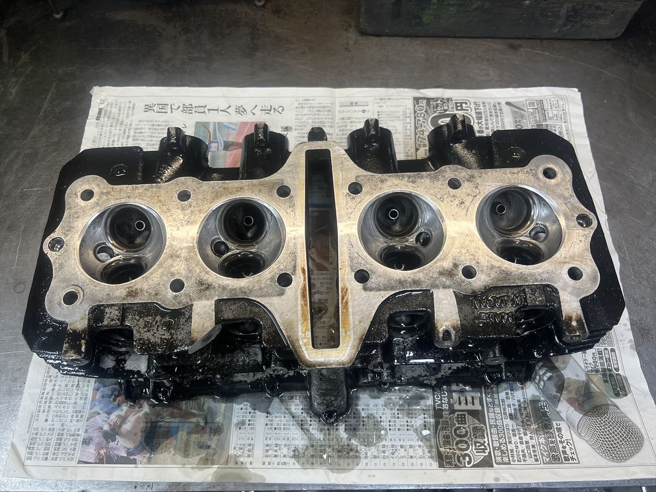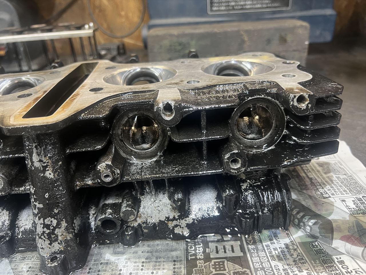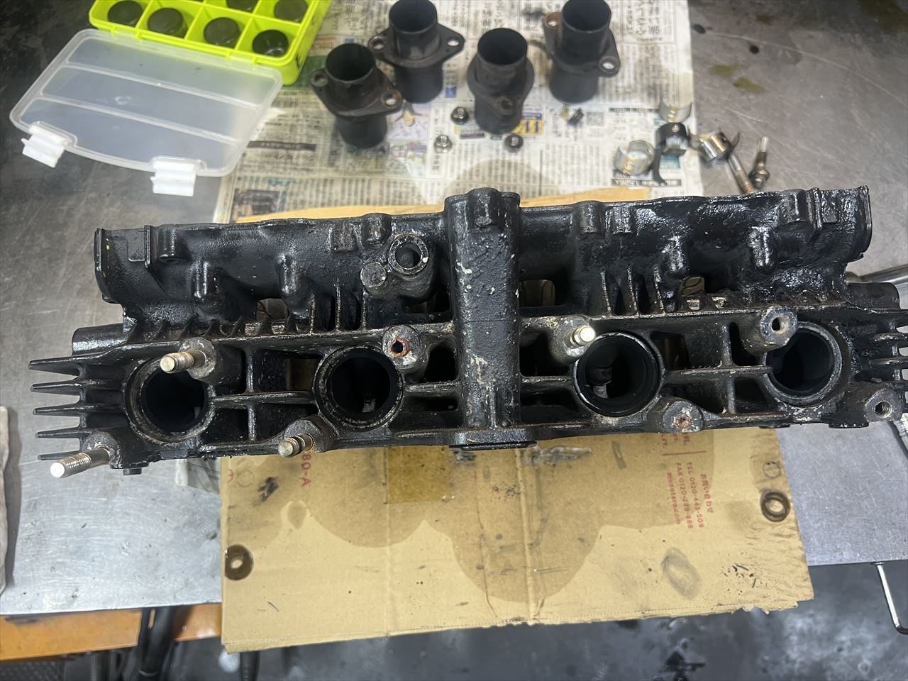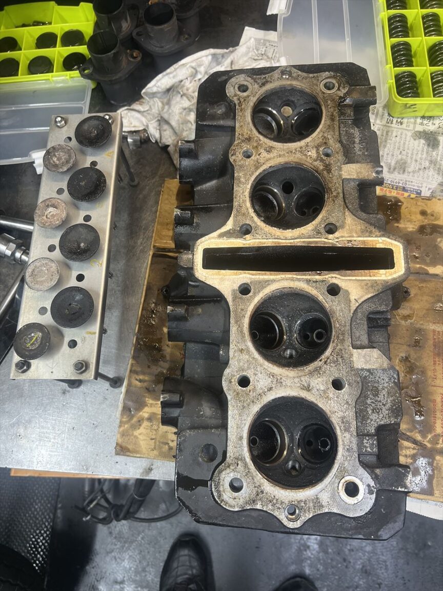 残るはヘッド。エキゾーストスタッドが何本か折れており、固着しているナットもあるので慎重に外します。