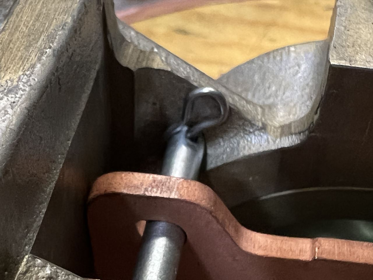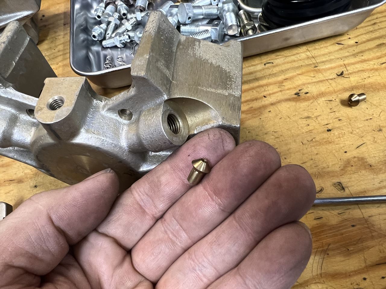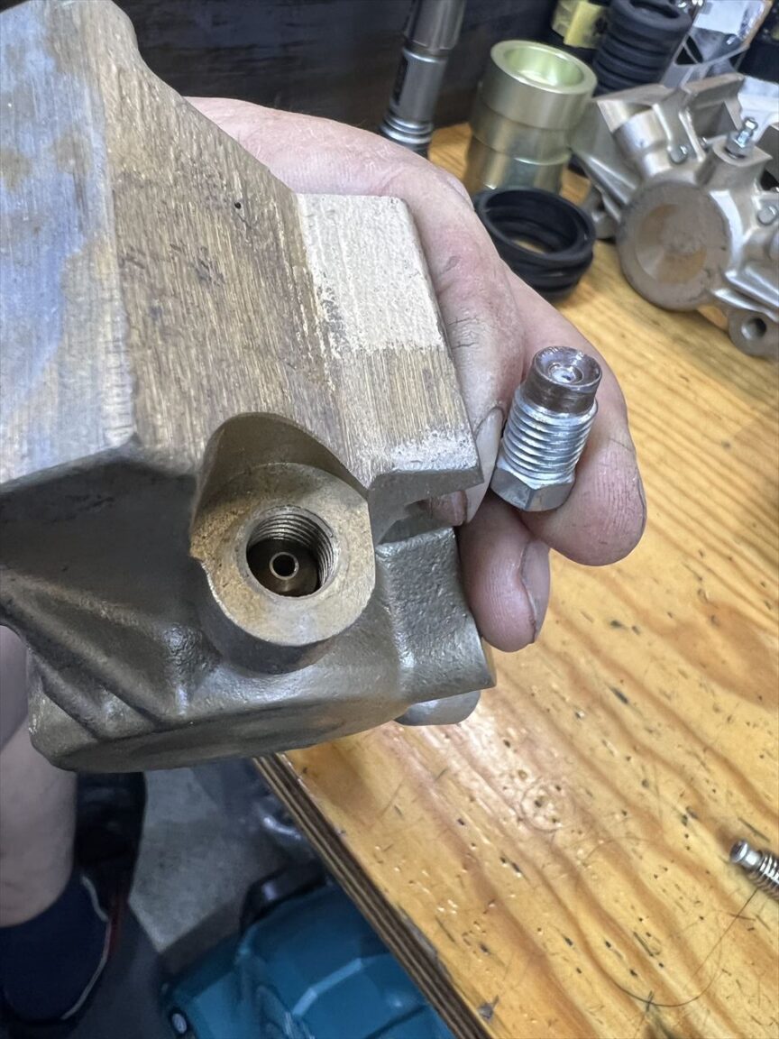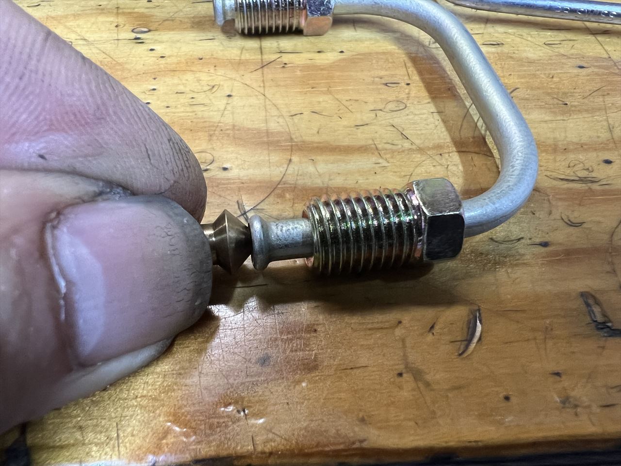 左右を連結するブレーキチューブの端はダブルフレアの形状です。加工の都合で内部にこんなコマが入れてあります。