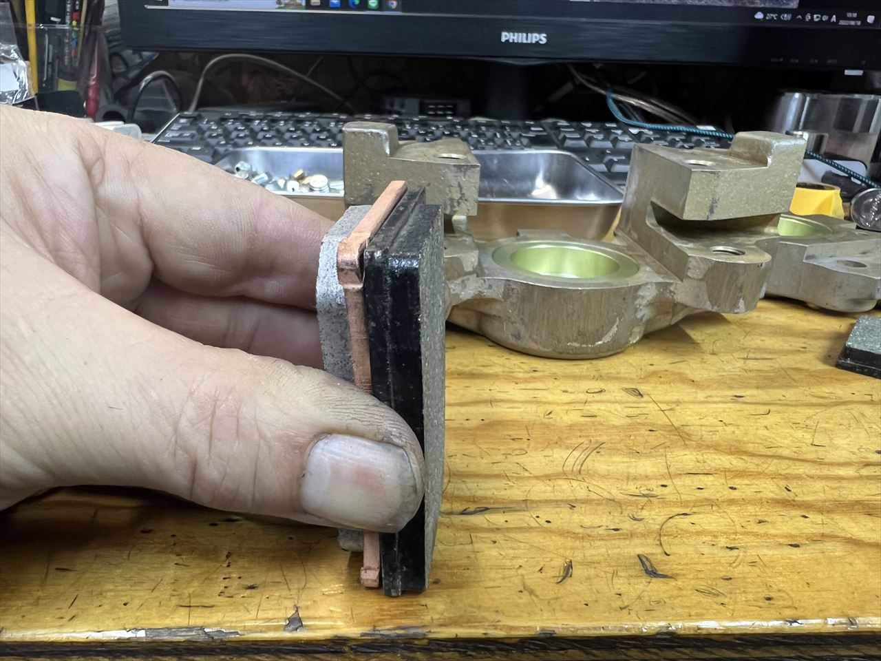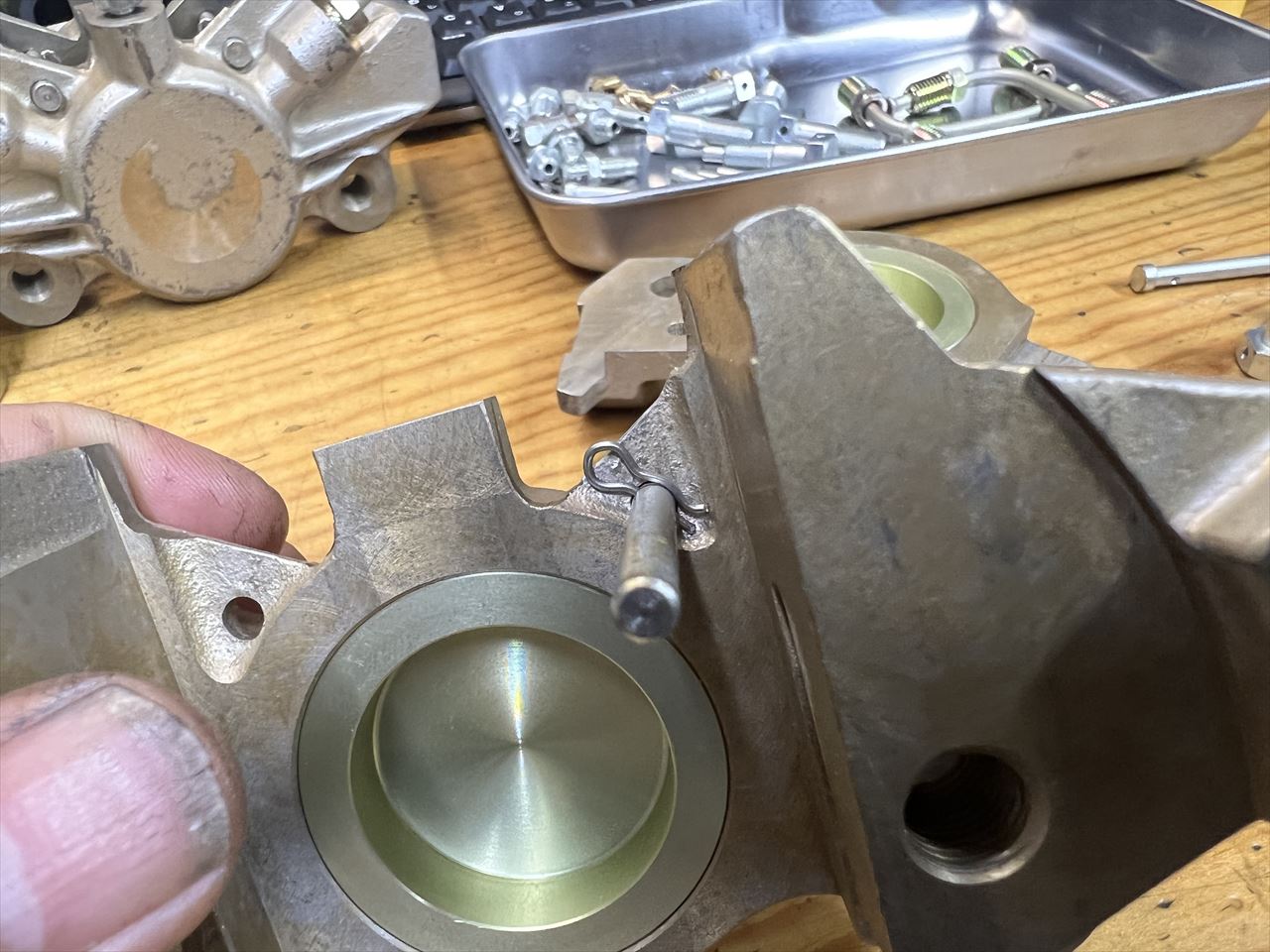 パッドピンはベータピンで固定しますが、そのスペースが狭いので市販品のままでは付きません。