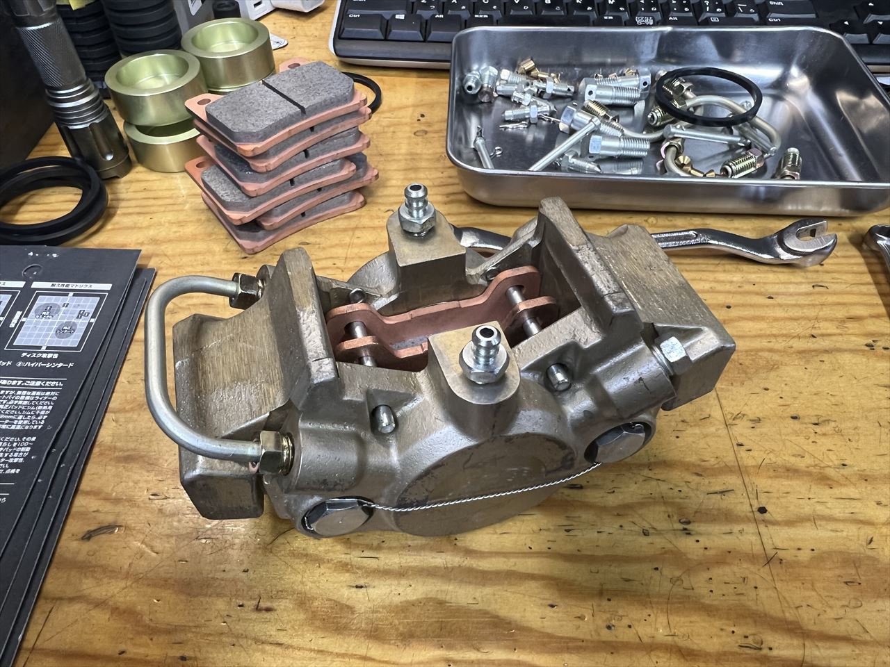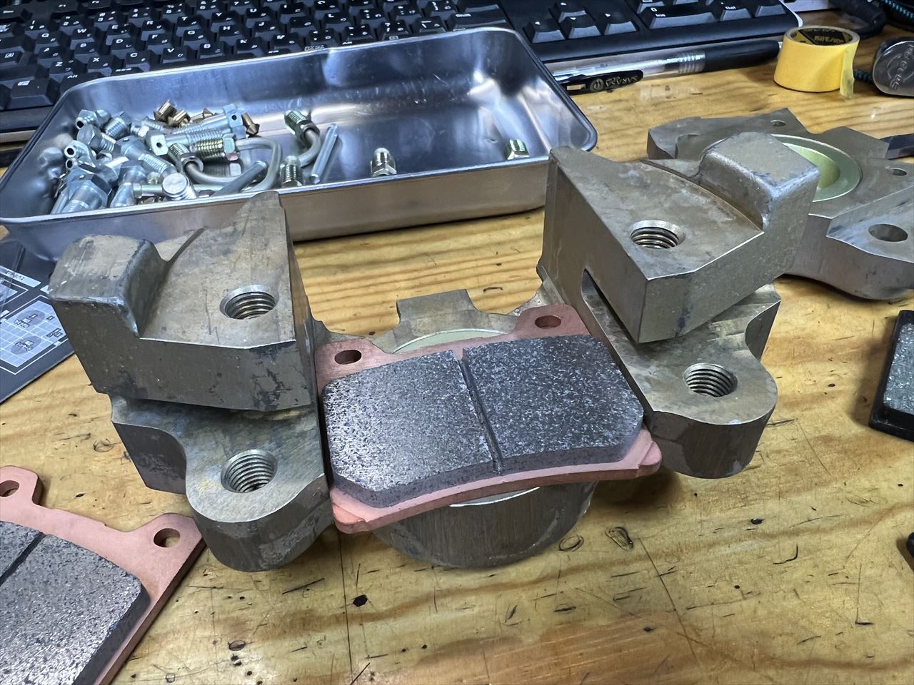 ホイールにもよりますが、パッドが付いたまでは車両のローターへの脱着が行いえない場合が多いです。キャリパーの脱着はパッドを外してやるのが基本です。