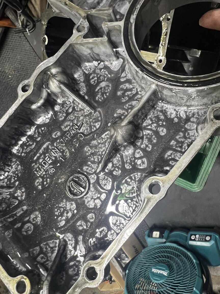オイルパン内には大量の金属粉が堆積しています。