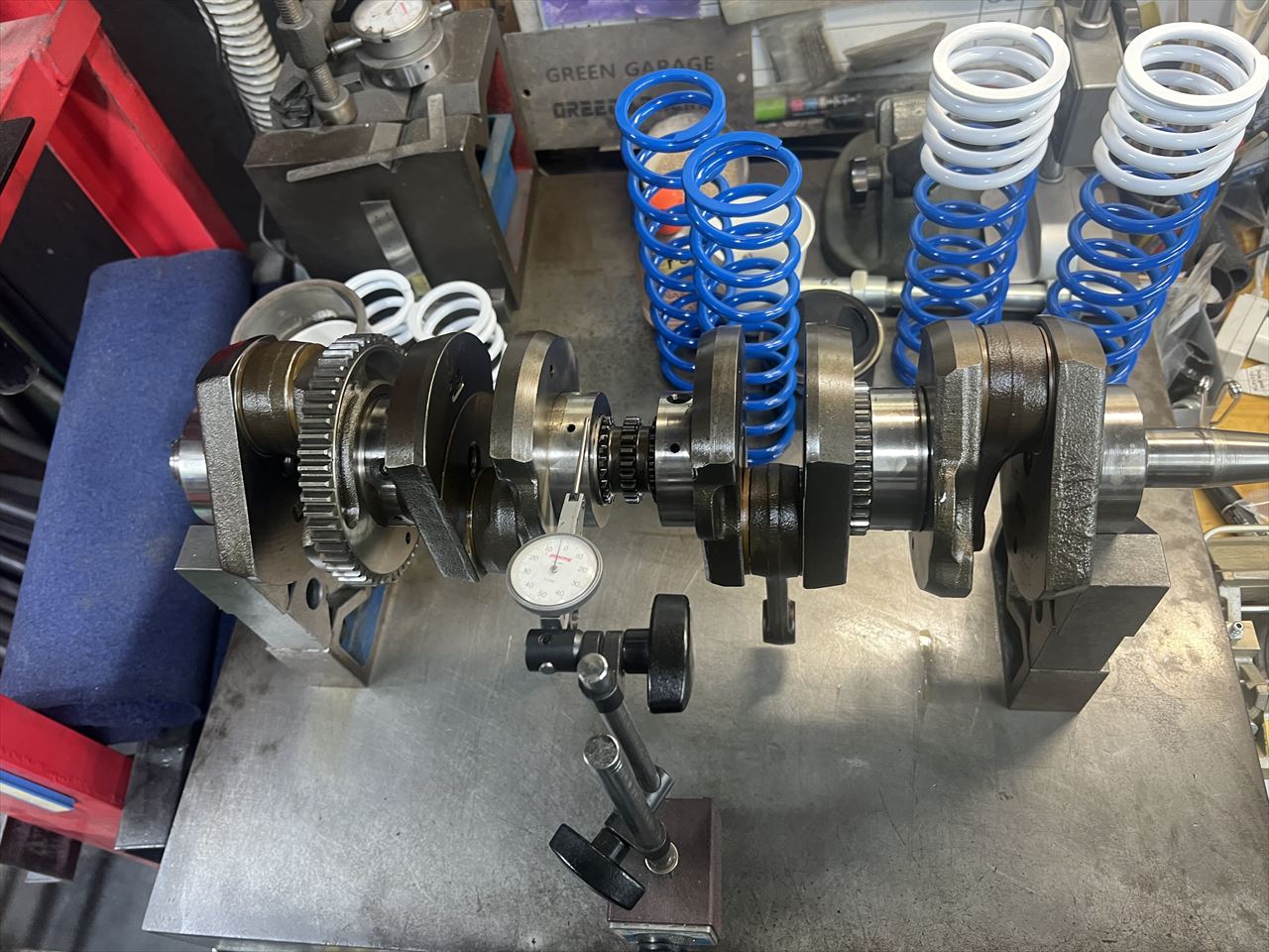 クランクのみ交換してリビルドしたエンジン腰下を車載します。