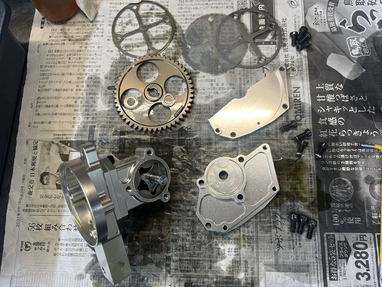 ハイプレッシャータイプのオイルポンプも分解洗浄します。