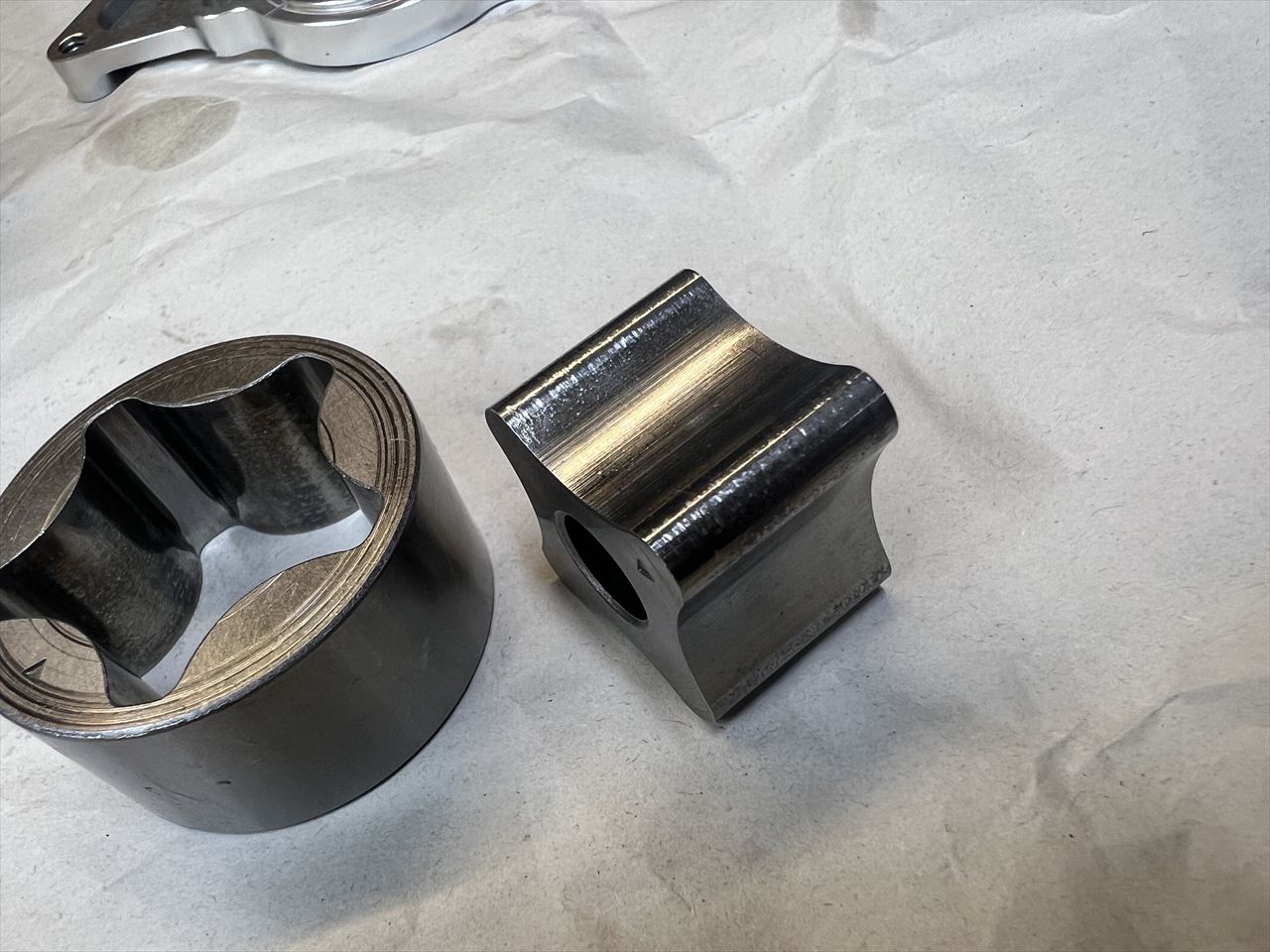 アルミ製のスリーブは中間ばめということで、比較的スムーズに脱着できるそうです。シリンダーと同じアルミ製スリーブなので、熱膨張が同じで圧入代がいらないとのこと。内面はメッキ後、プラトーホーニングしてあるので、ほとんど慣らしは不要です。