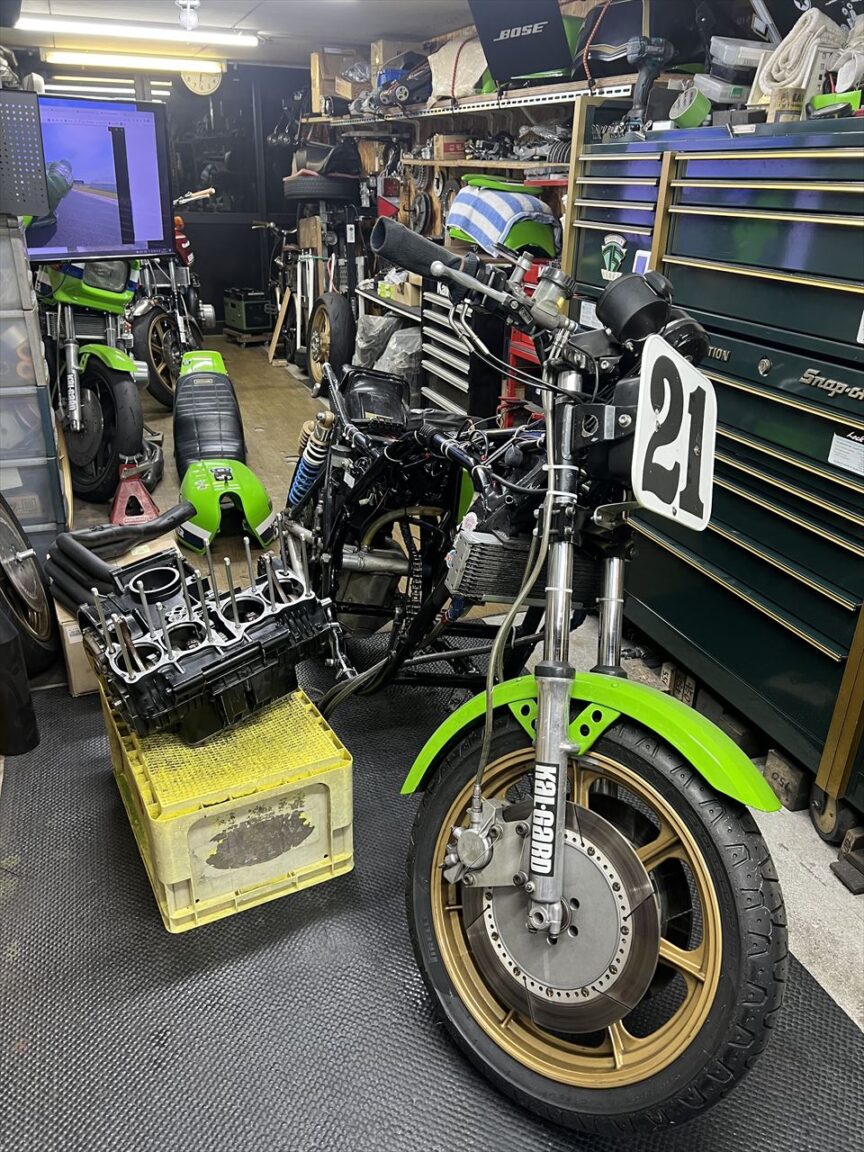 前回5月のTOT予選でブローしたエンジンは、ようやく部品が揃ったのでリビルドします。こちらは予選のあと、リタイヤ届を出してから分解して状況を確認しているところです。