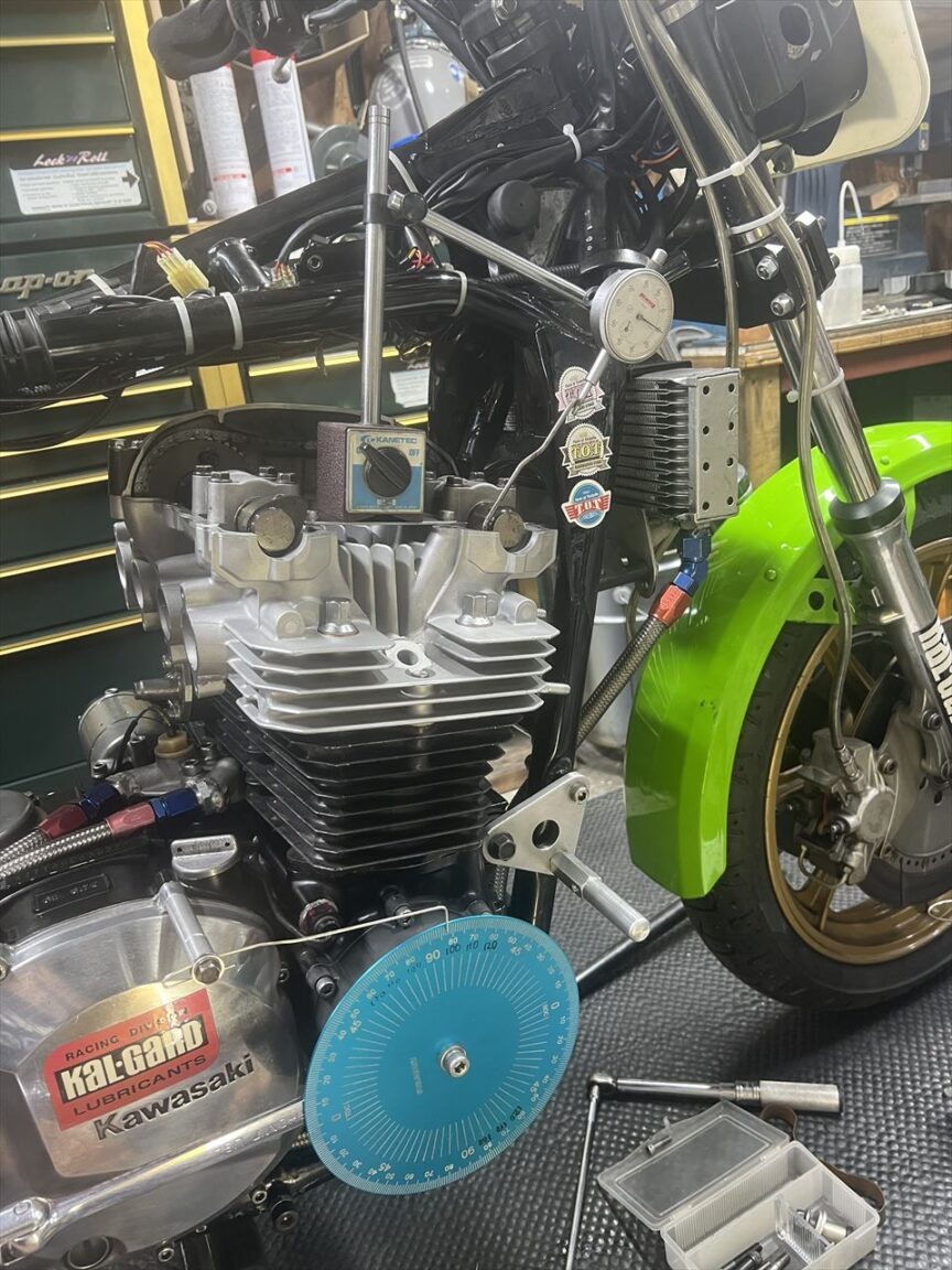 ヘッドとカムを組み、バルブタイミングを調整します。