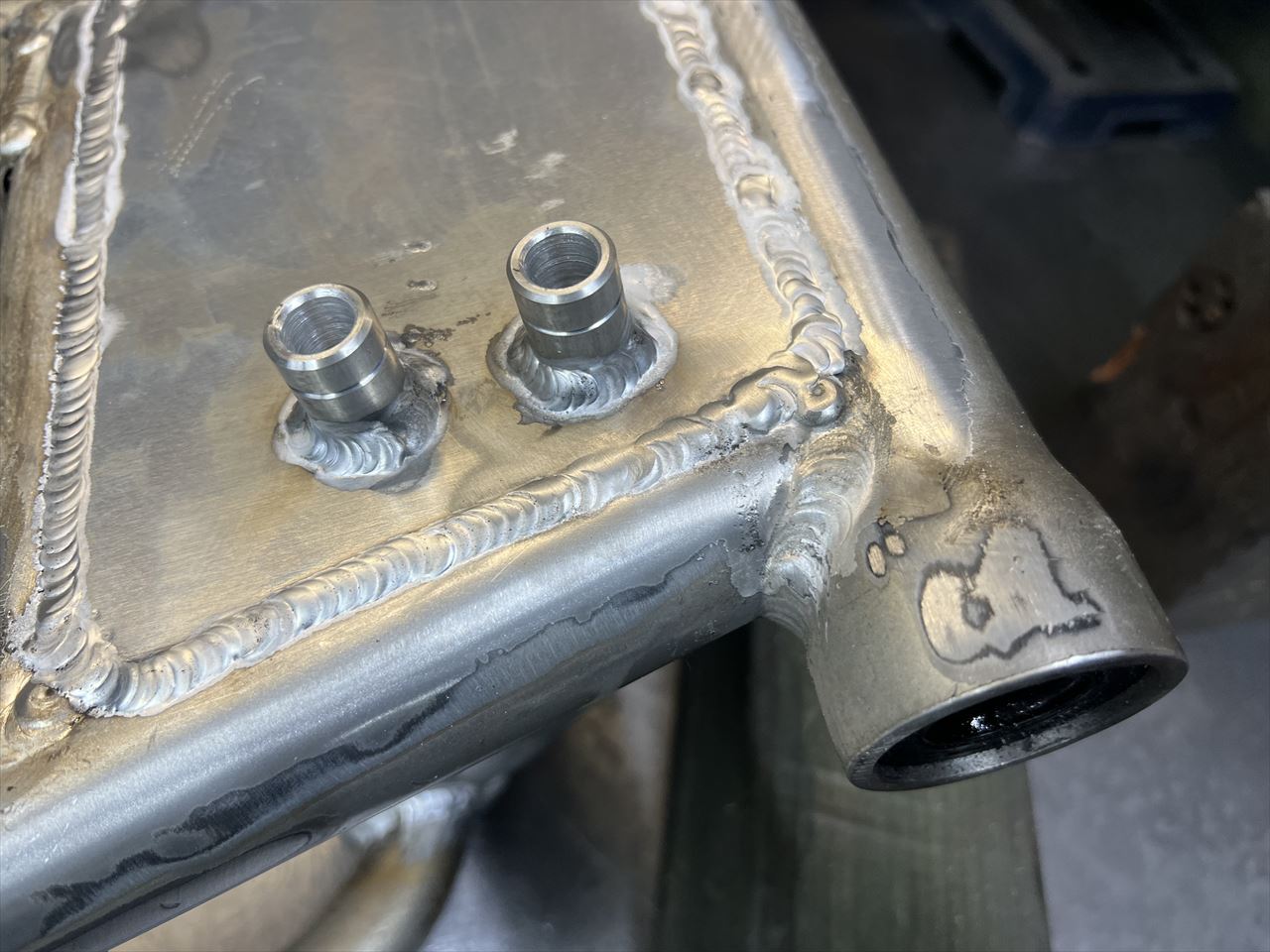 続いてドレン部分。ネジを切ったピースを溶接します。