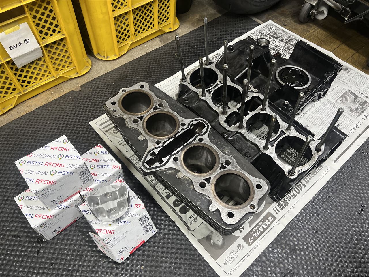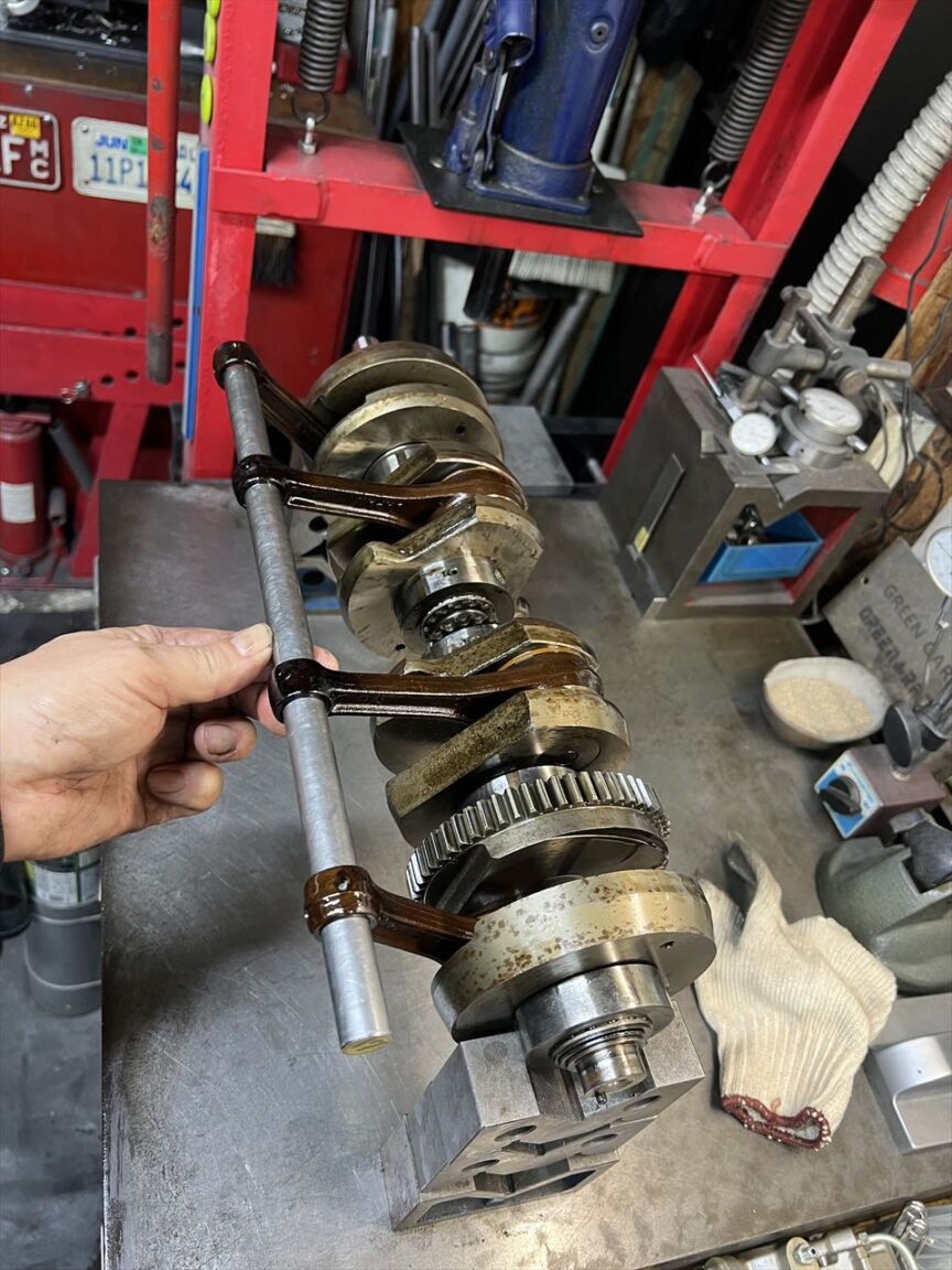 今回もサポートの方に手伝っていただきながらのエンジン分解作業です。デモ車Z1R-2用のエンジン腰下分解です。