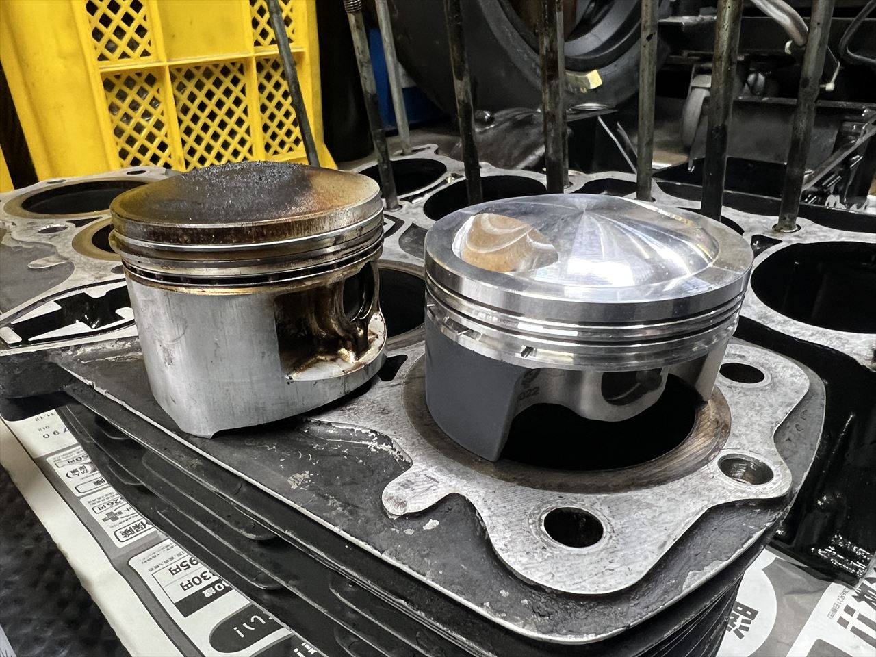 シリンダーは井上ボーリングのアルミシリンダー「ICBM」を組むので、ボーリングが必要なクランクケースアッパーと一緒に、シリンダーとピストンを井上ボーリングに送って加工していただきます。