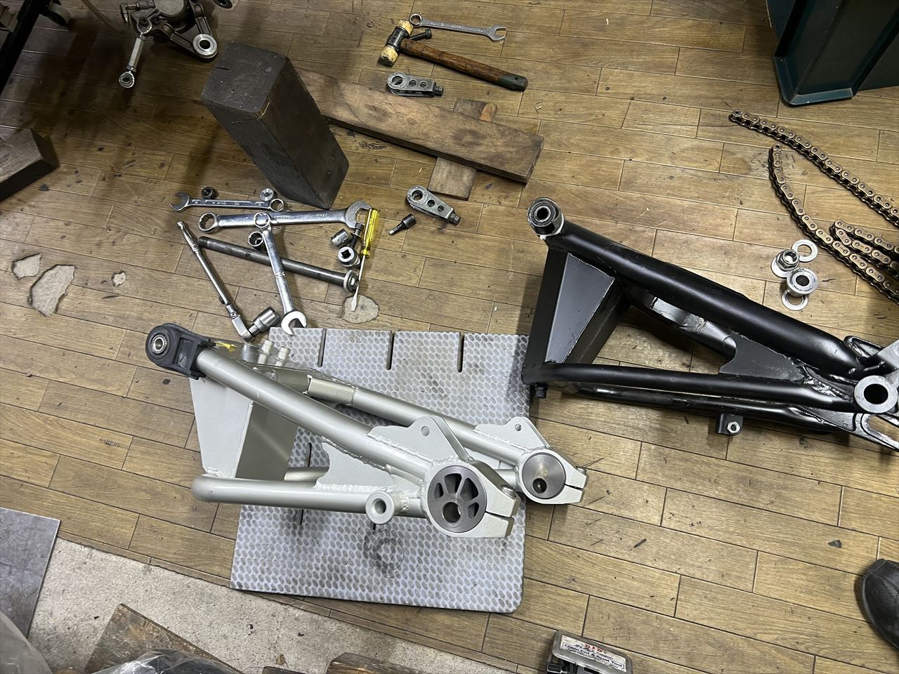 既存の鉄S1スイングアームを外して 交換します。鉄S1スイングアームも随時製作可能で、丸Jなどにはよく似合うと思います。