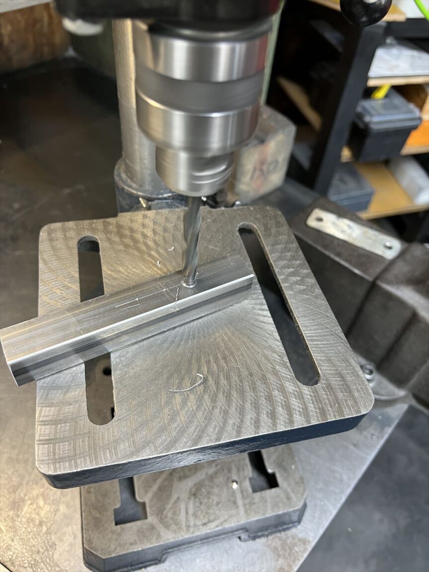 穴中心にポンチを打ちます。