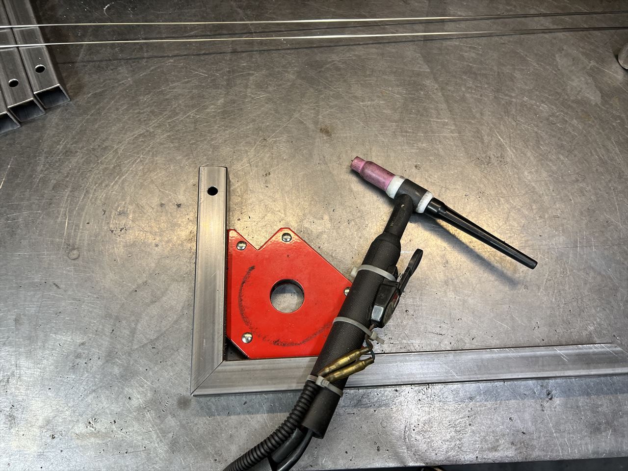 コーナーマグネットで固定して溶接します。