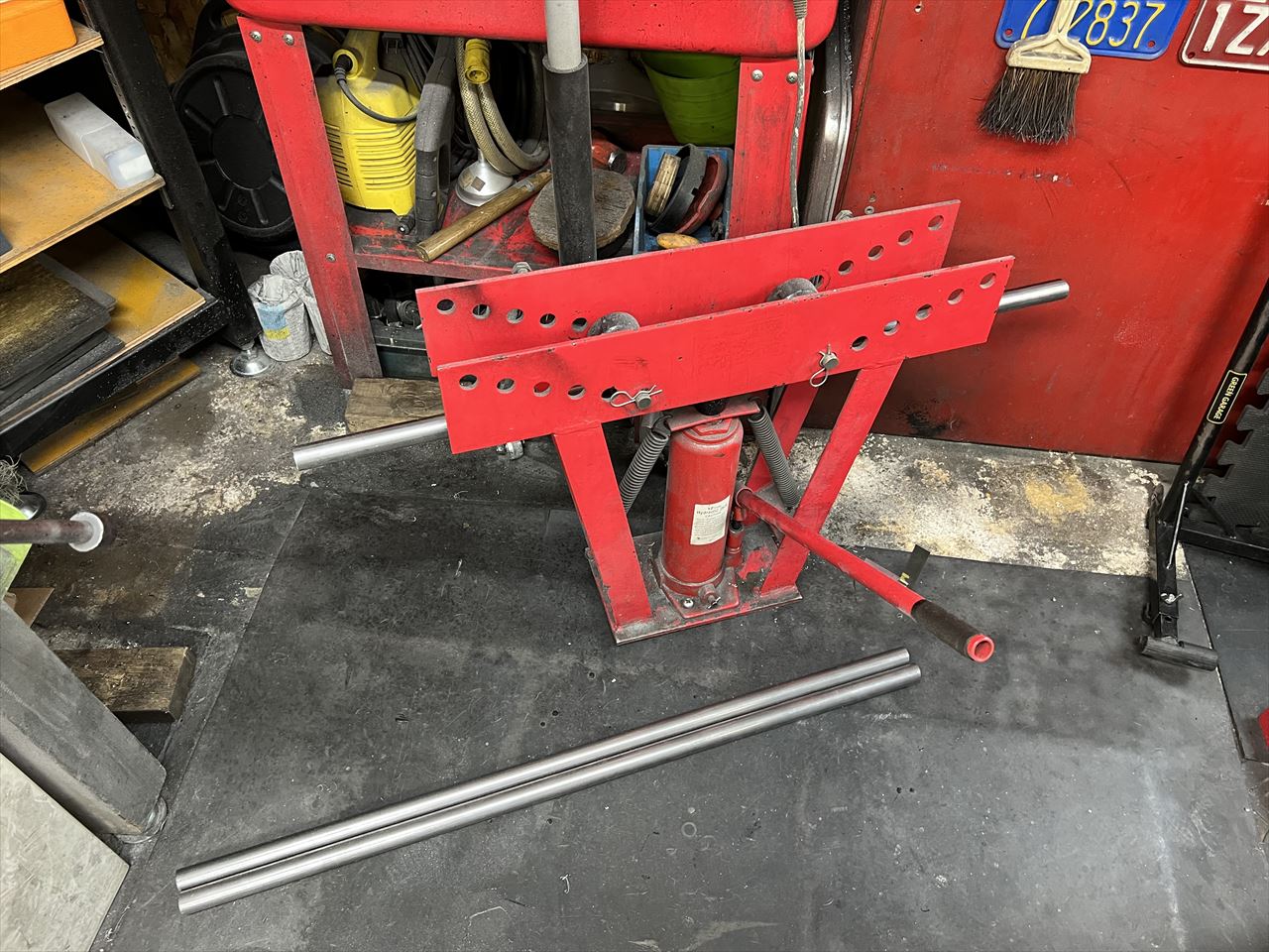 持ち手部分のパイプをベンダーで曲げます。