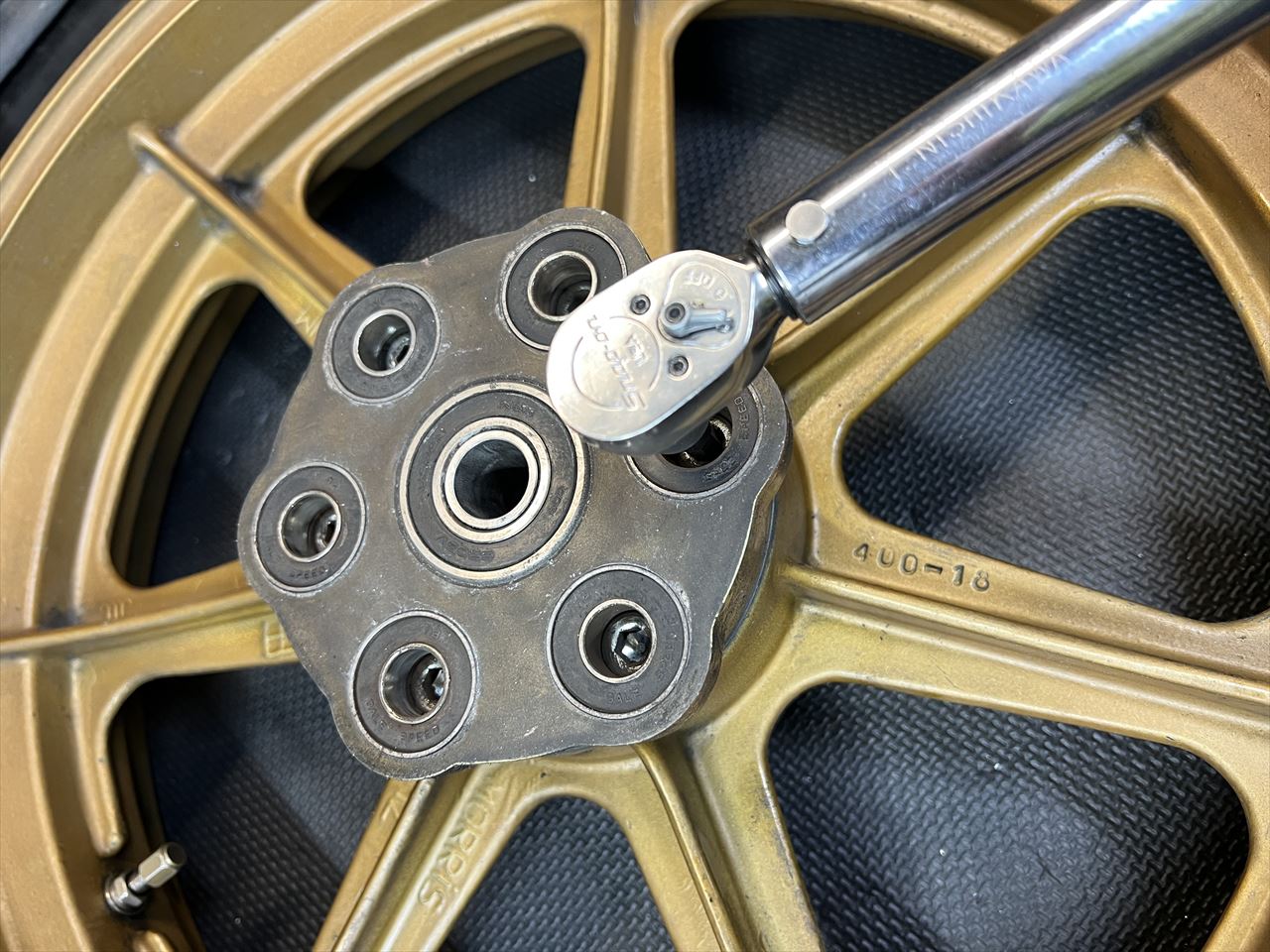 前後とも、振れは無く、ホイールベアリングも特に問題は無いようです。ハブダンパーはゲイルスピード製に交換されており、こちらもまだ継続使用できそうです。