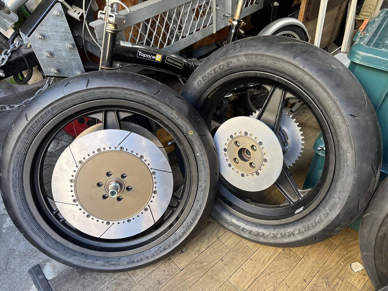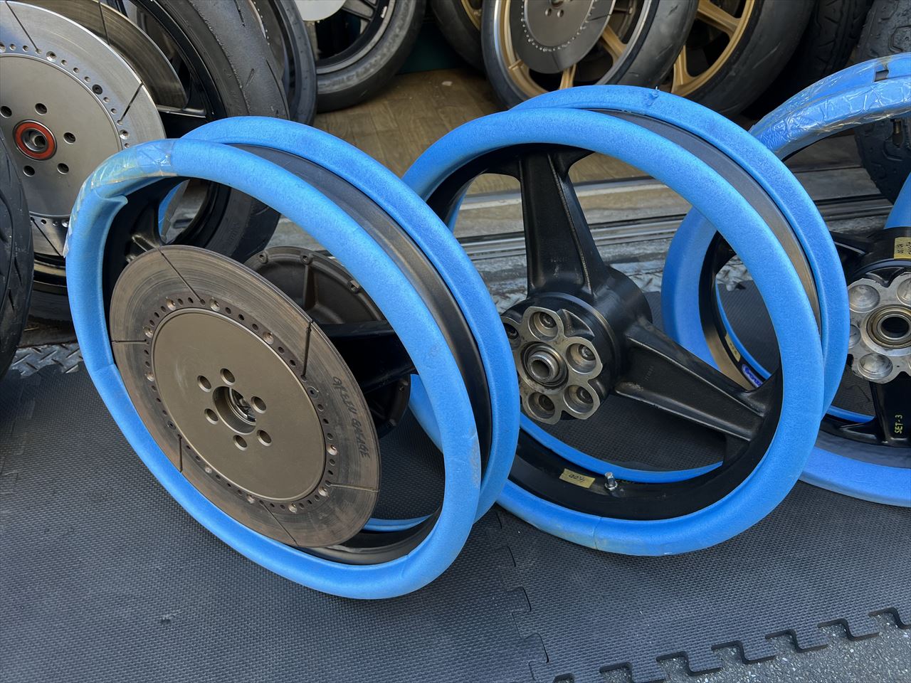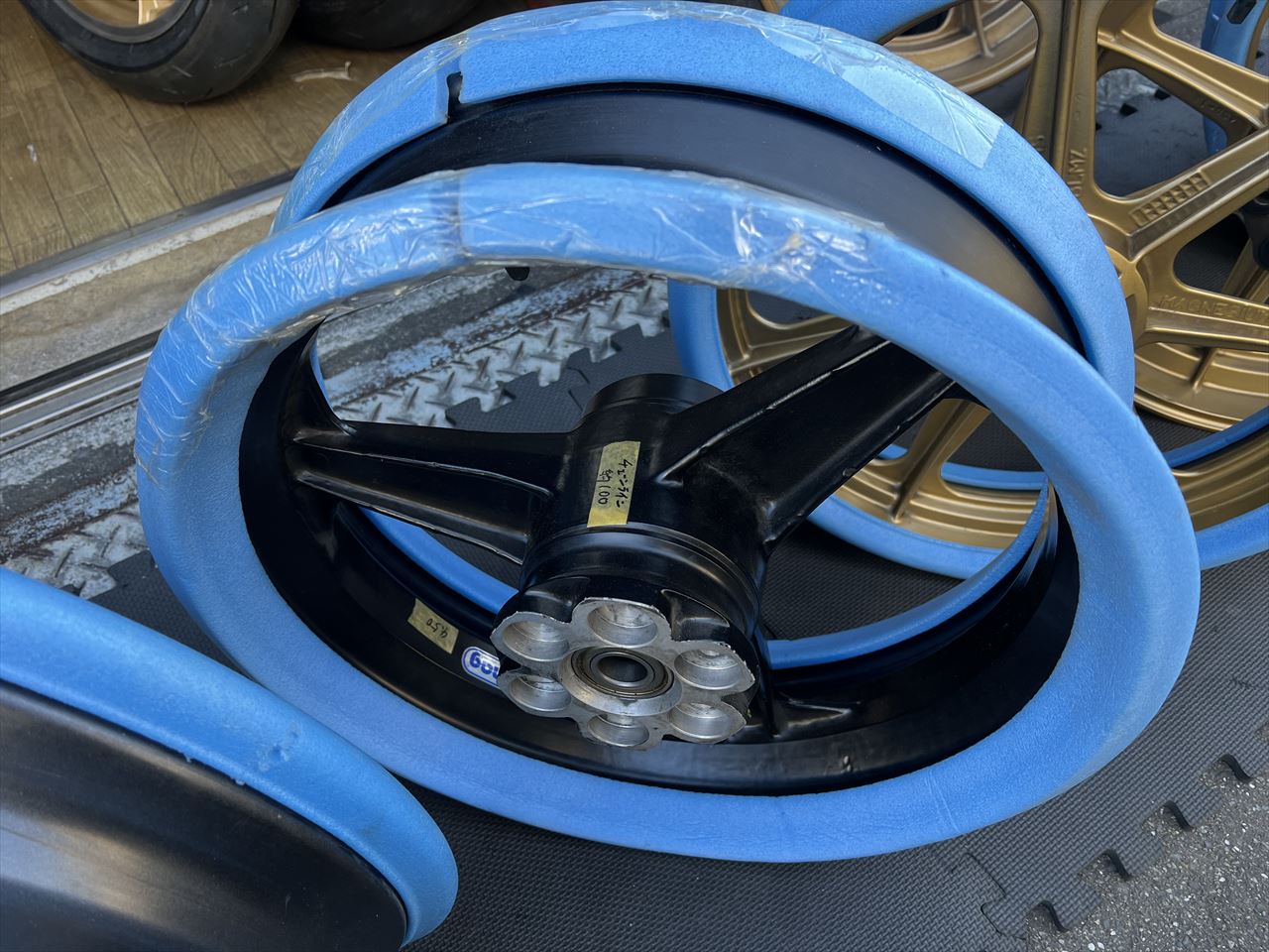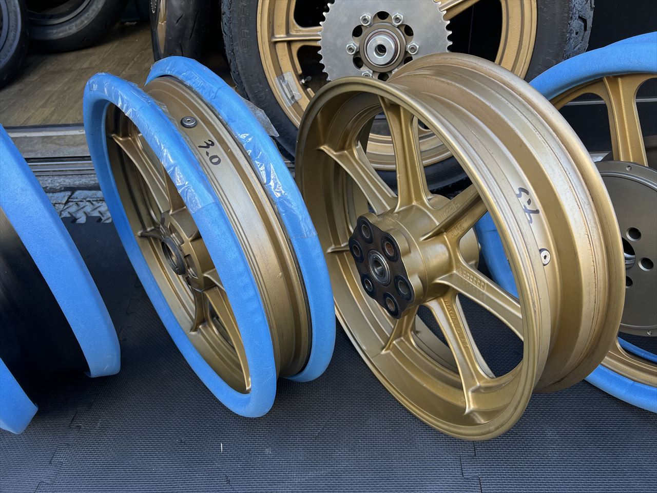 ここからは現在仕掛り中のお客様のホイールです。こちらはZ1000Rように仕立てた前後S1仕様のダイマグ。希少なフラットリムが本物の雰囲気を醸し出しています。