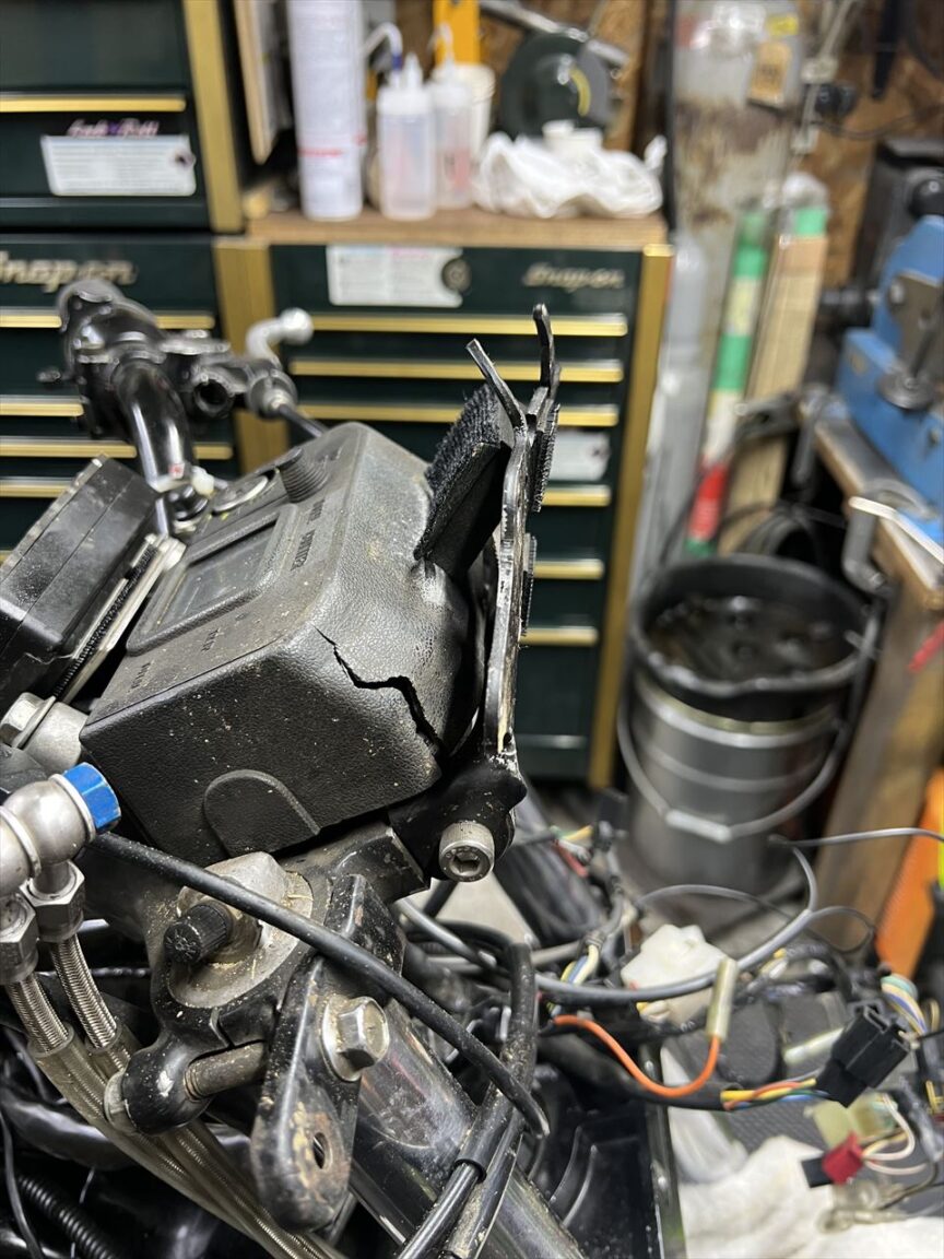 純正のメーターステーも大きく曲がっています。