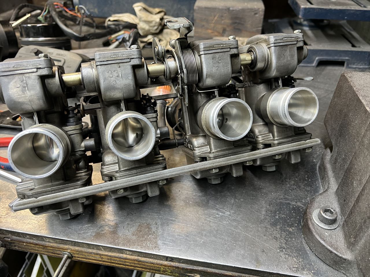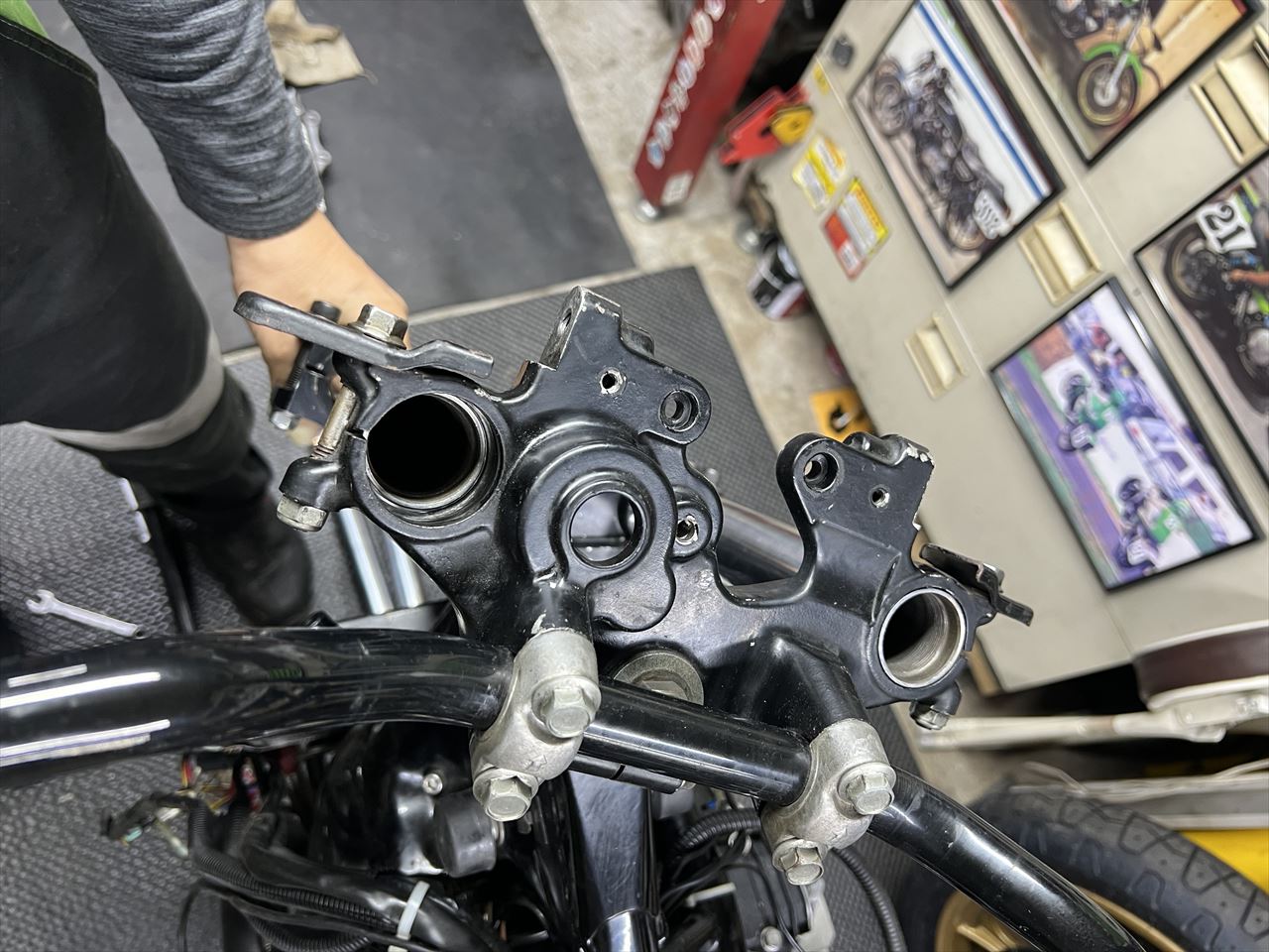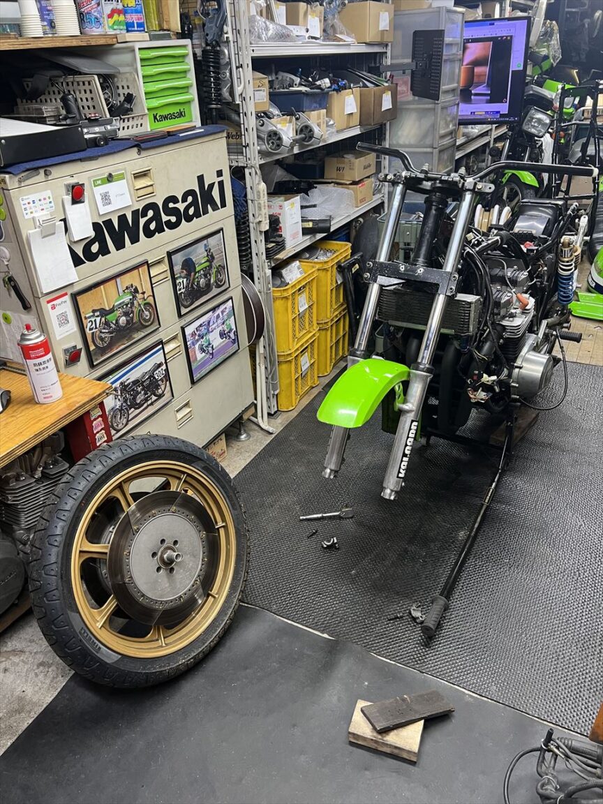 昨年10月5日の筑波サーキット最終コーナーでの転倒から5ヵ月余り。転倒で痛めた右肩の調子もだいぶ戻ってきたところで分解点検します。