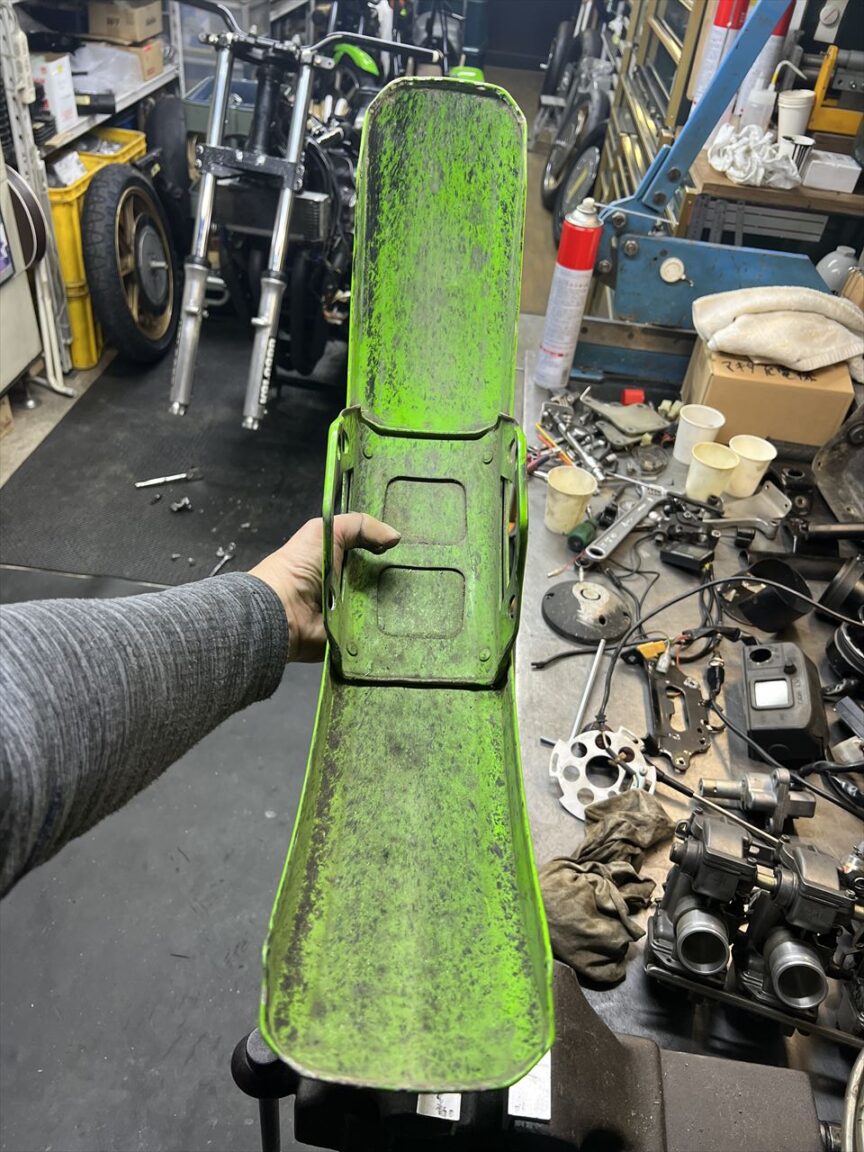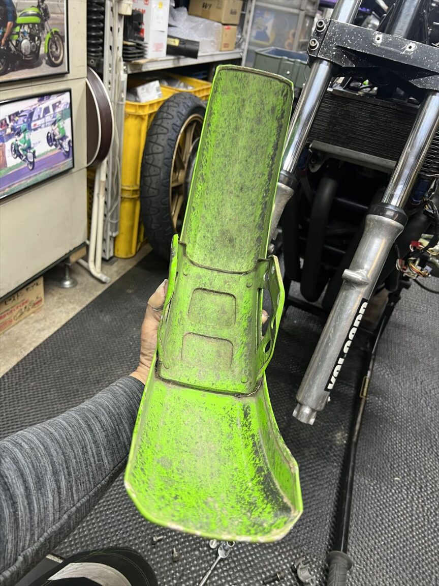 フロントフェンダーはステーが大きく曲がっていますが、本体はわりと大丈夫な感じ。