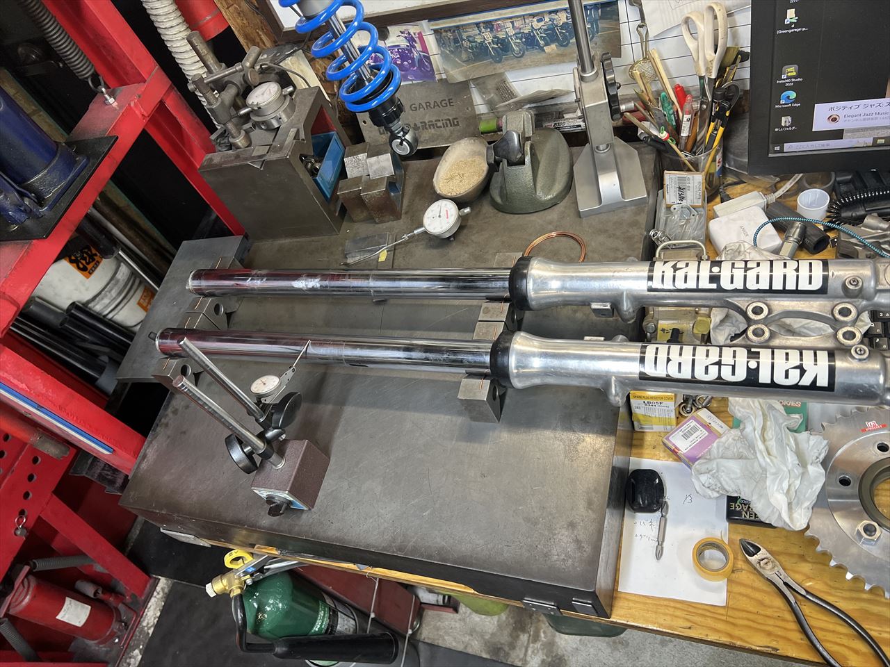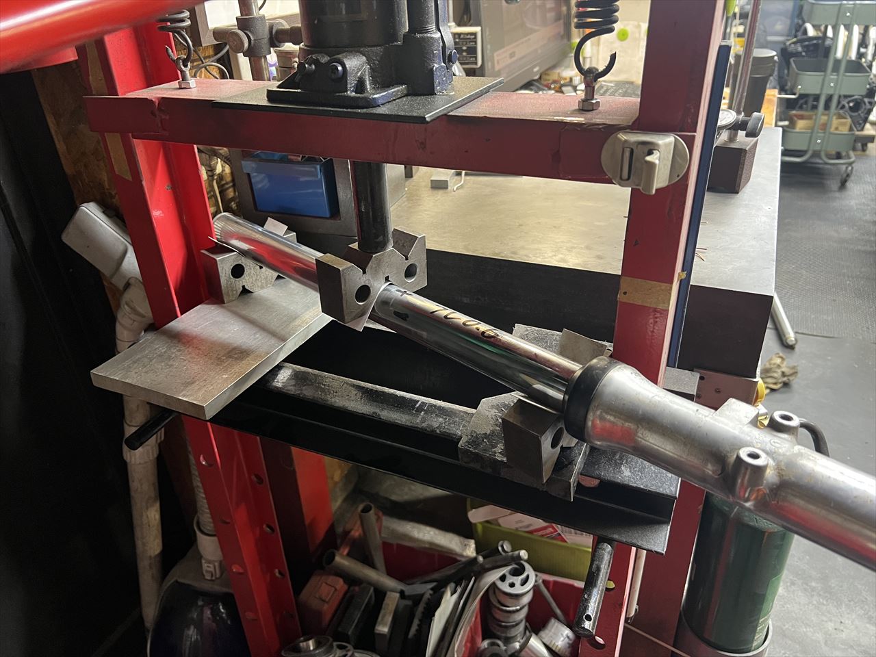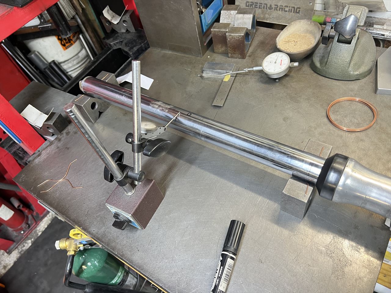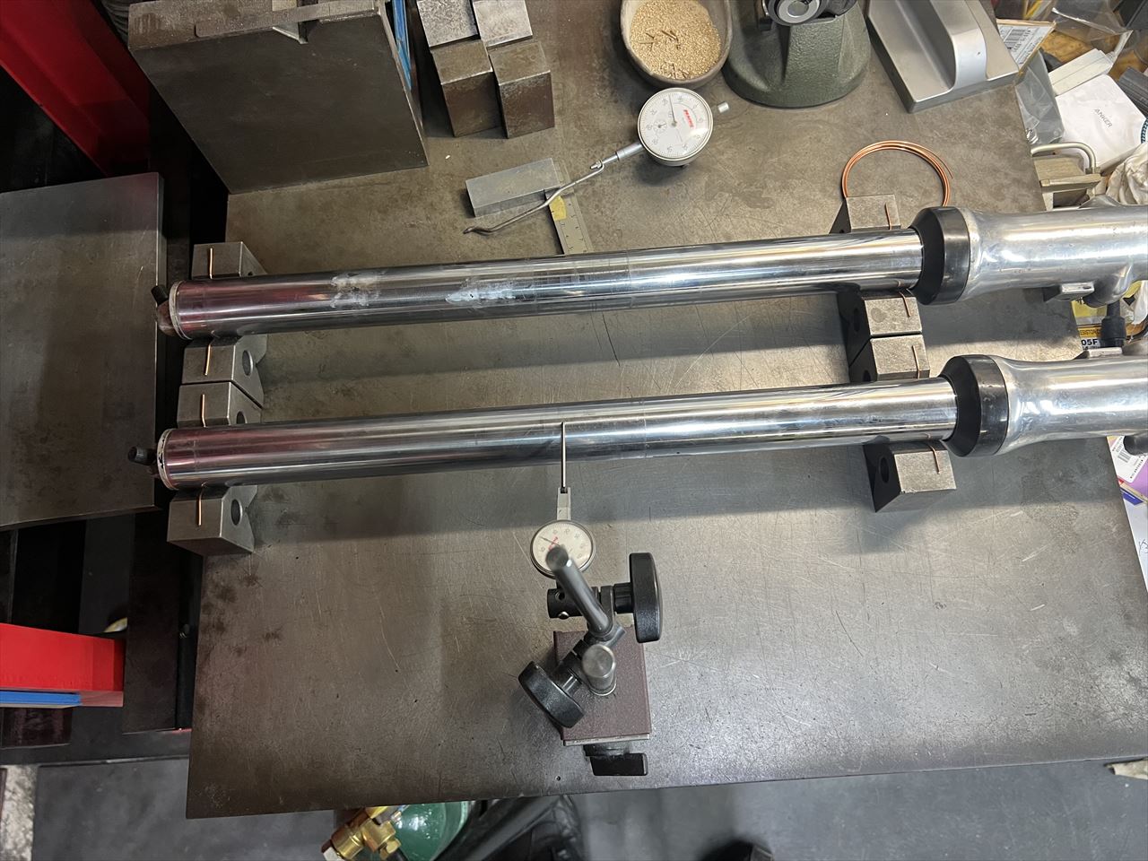 とりあえず分解しないでインナーチューブの曲がりを計測します。