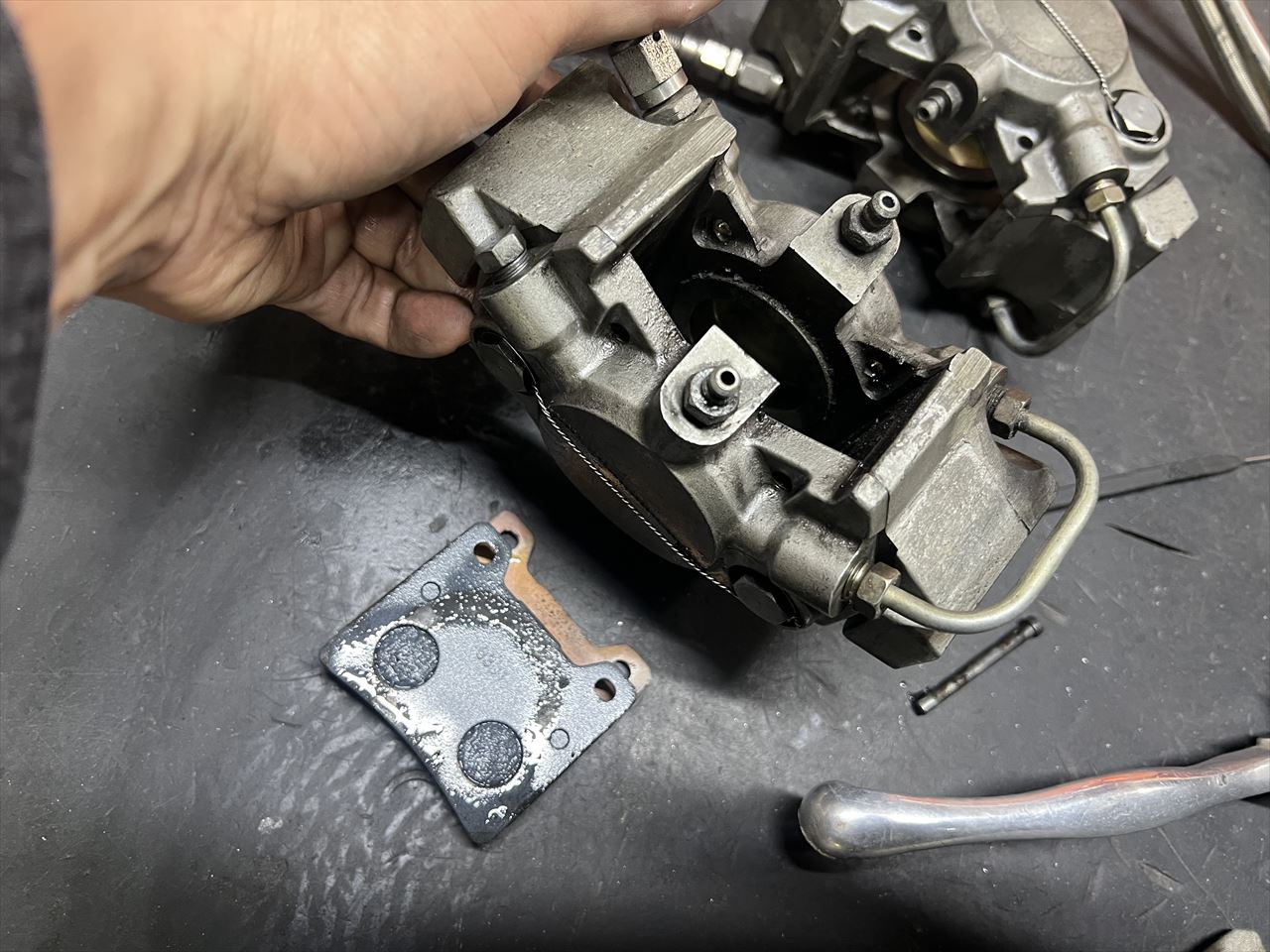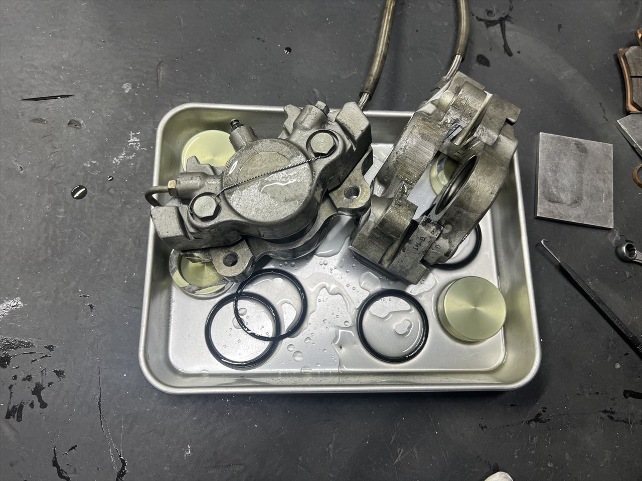 漏れは片方のキャリパーのシールからでした。
