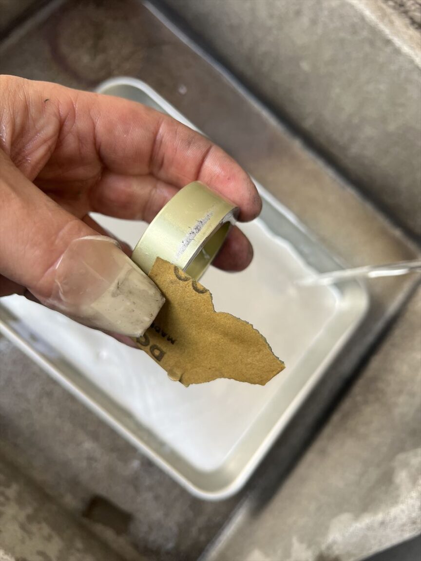 ピストンは先端部に傷が多いので、#1000番の細かいサンドペーパーでクリーニングします。