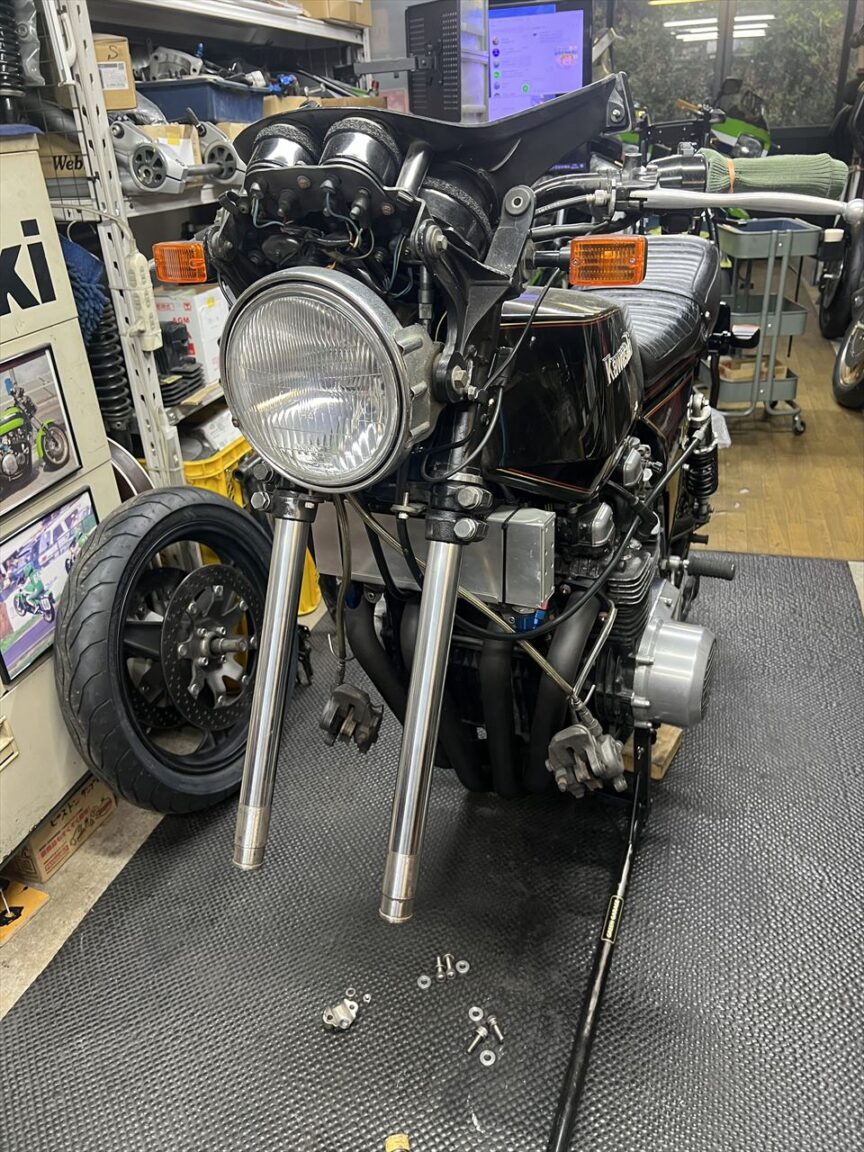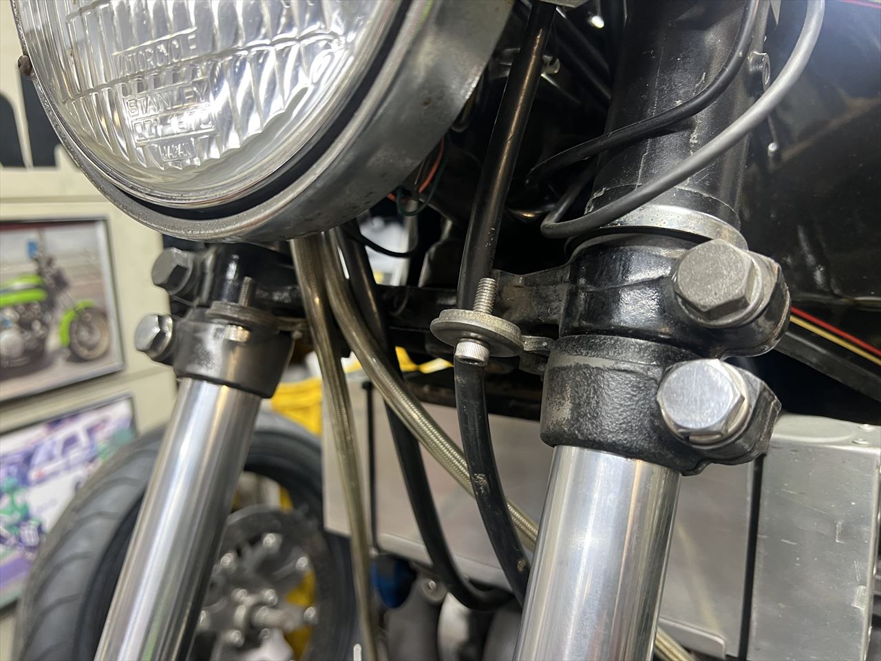 次にステムの加工です。AMAのカワサキワークスMk2のように、ステムのクランプ部分を2段にします。先ずはダミーのインナーチューブを通し、素材のステムからクランプ部分だけ切り取ったものをセットします。