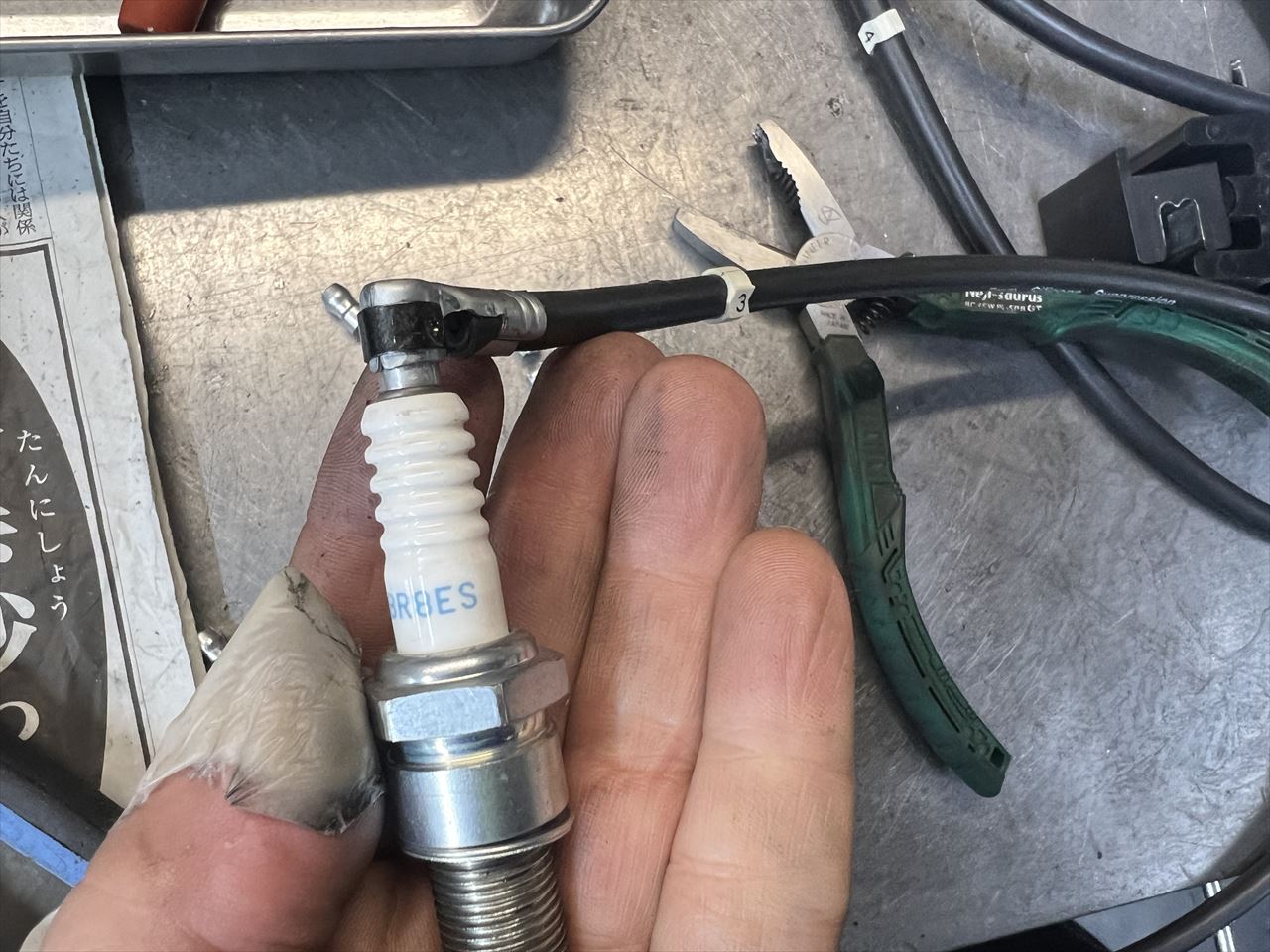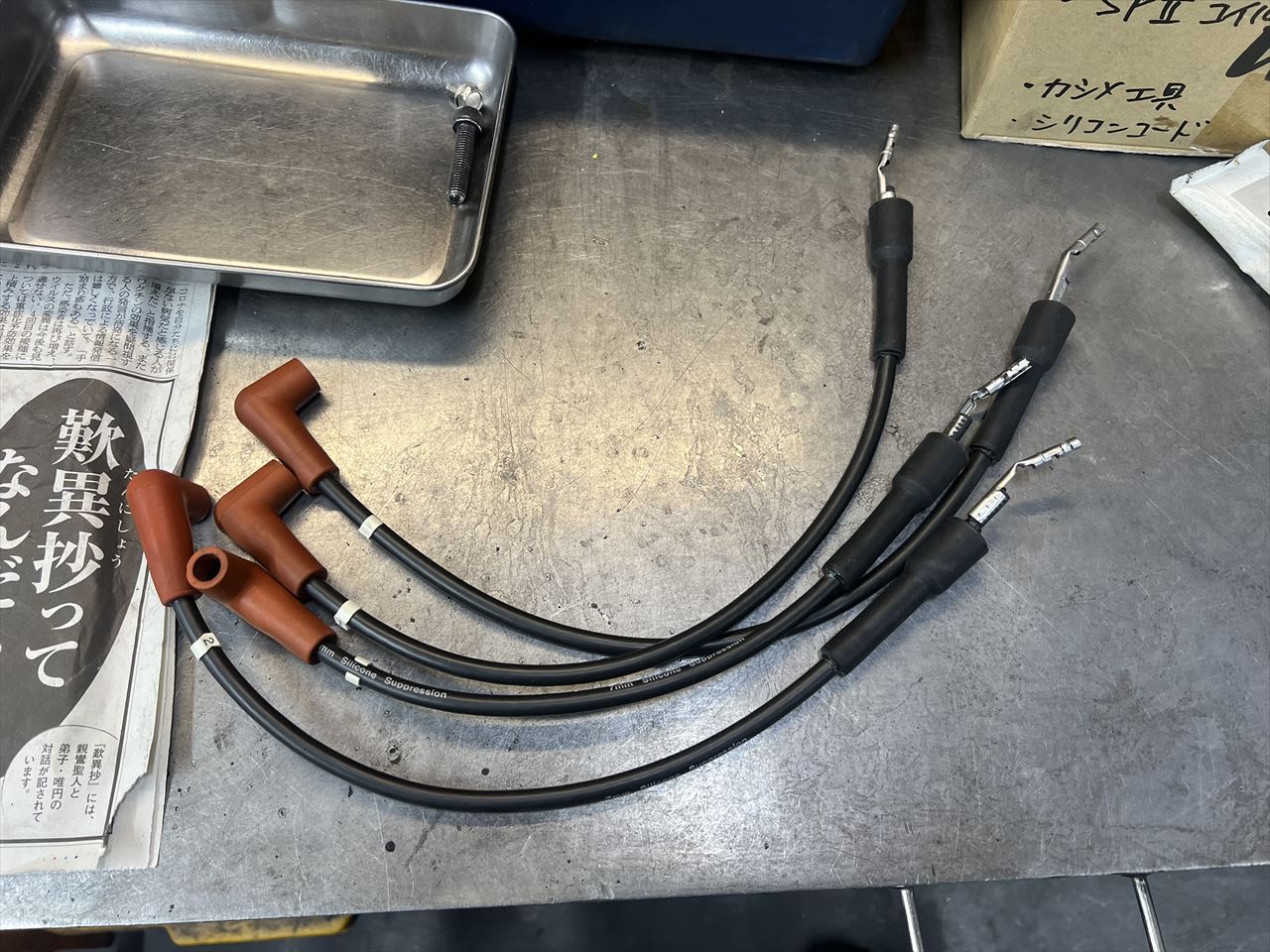 点火系をウオタニSP2に交換するので、プラグコードも更新します。コードはφ7ミリシリコンコードを使用。キャップはワークス車同様のオレンジシリコンキャップです。もうオレンジシリコンキャップは入手できなくなったので、今回は中古のキャップを使います。