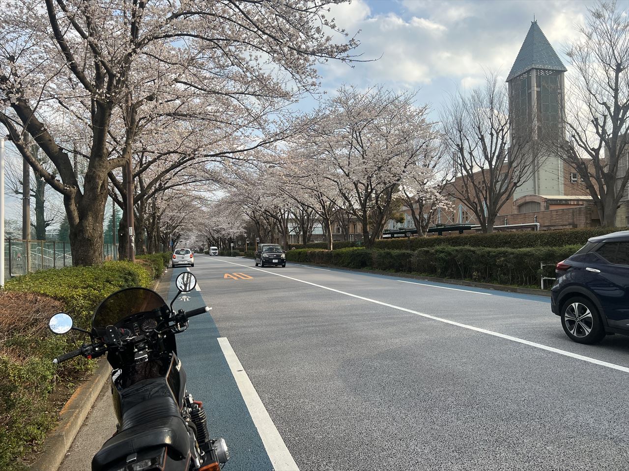 ガーレージ周辺を周ると、通りの桜はほぼ満開でした。季節が進むのは早いですね。