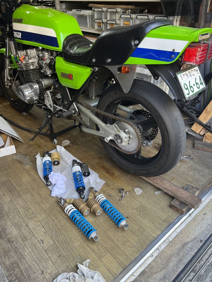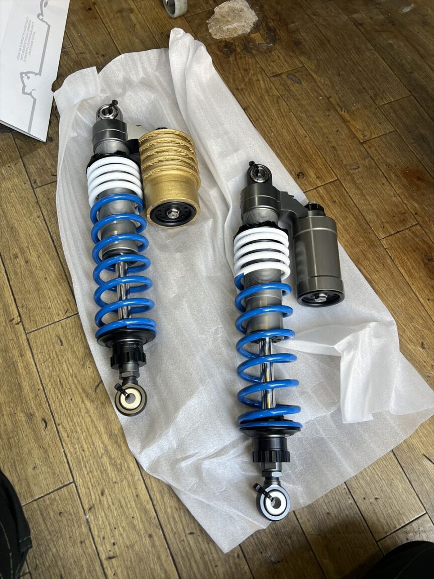 代わりに取り付けるのはこちらのナイトロンR3リヤショックです。全長やバネレートなどのスペックはGREEN GARAGEオリジナルバージョンです。それを更にワークスパフォーマンス化しようと試作したものです。