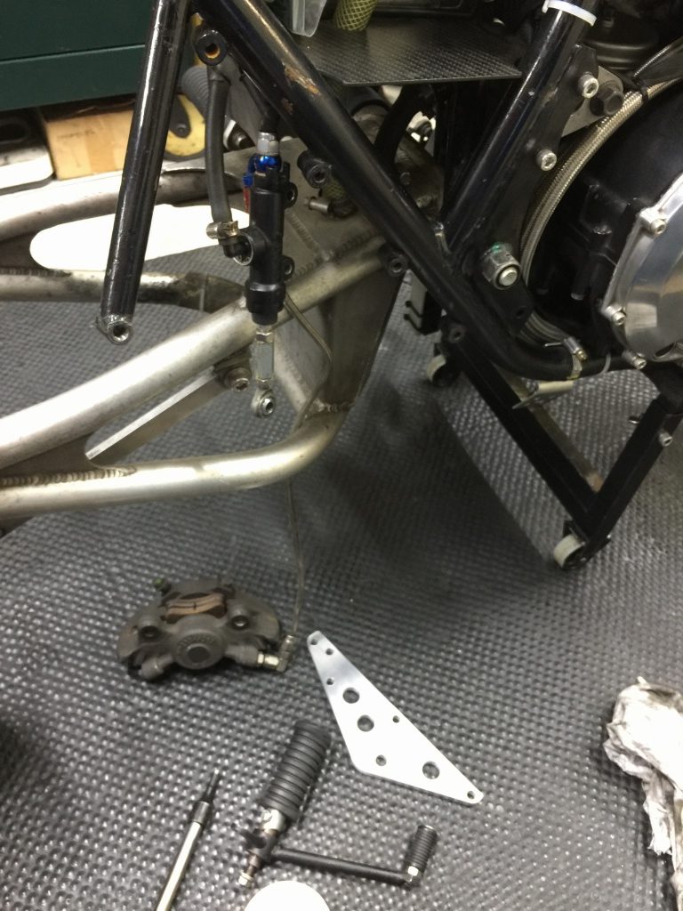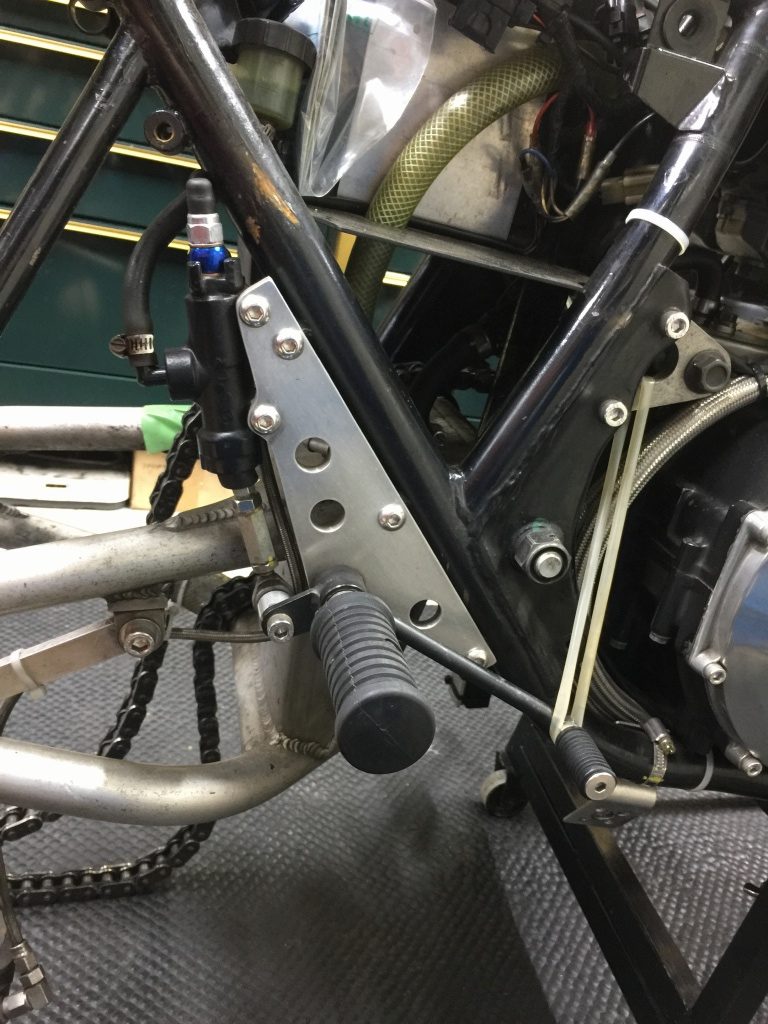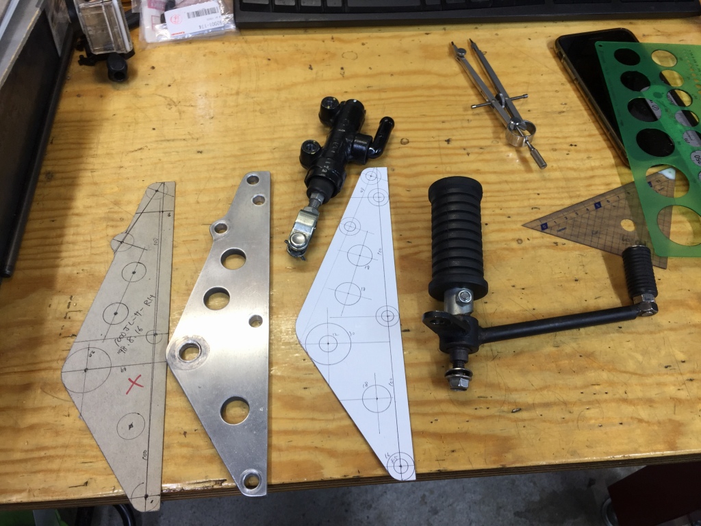 ステッププレートのリニューアルする目的は、最近更新に使ったニンジャ250純正リヤマスターが、取り付けのアライメントが若干異なるのでプッシュロッドが一直線になっていません。それの修正のためです。