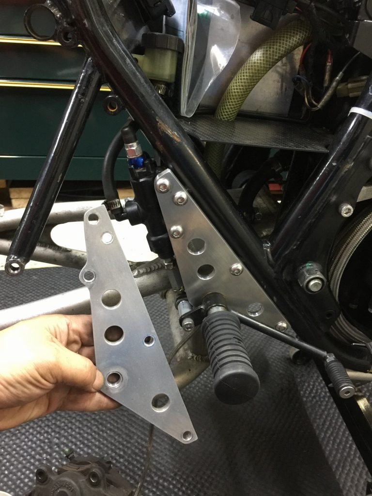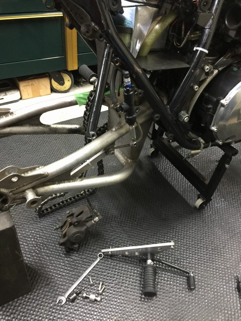 新しいマフラーの取り付け前に、右側のステッププレートもリニューアルします。