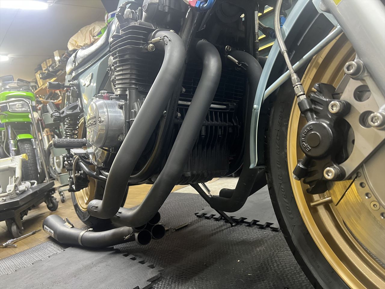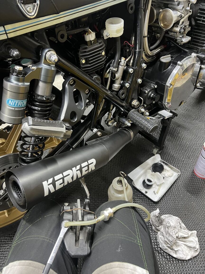 エキパイは外さずに、左右に振り分ければオイルとフィルター交換可能です。