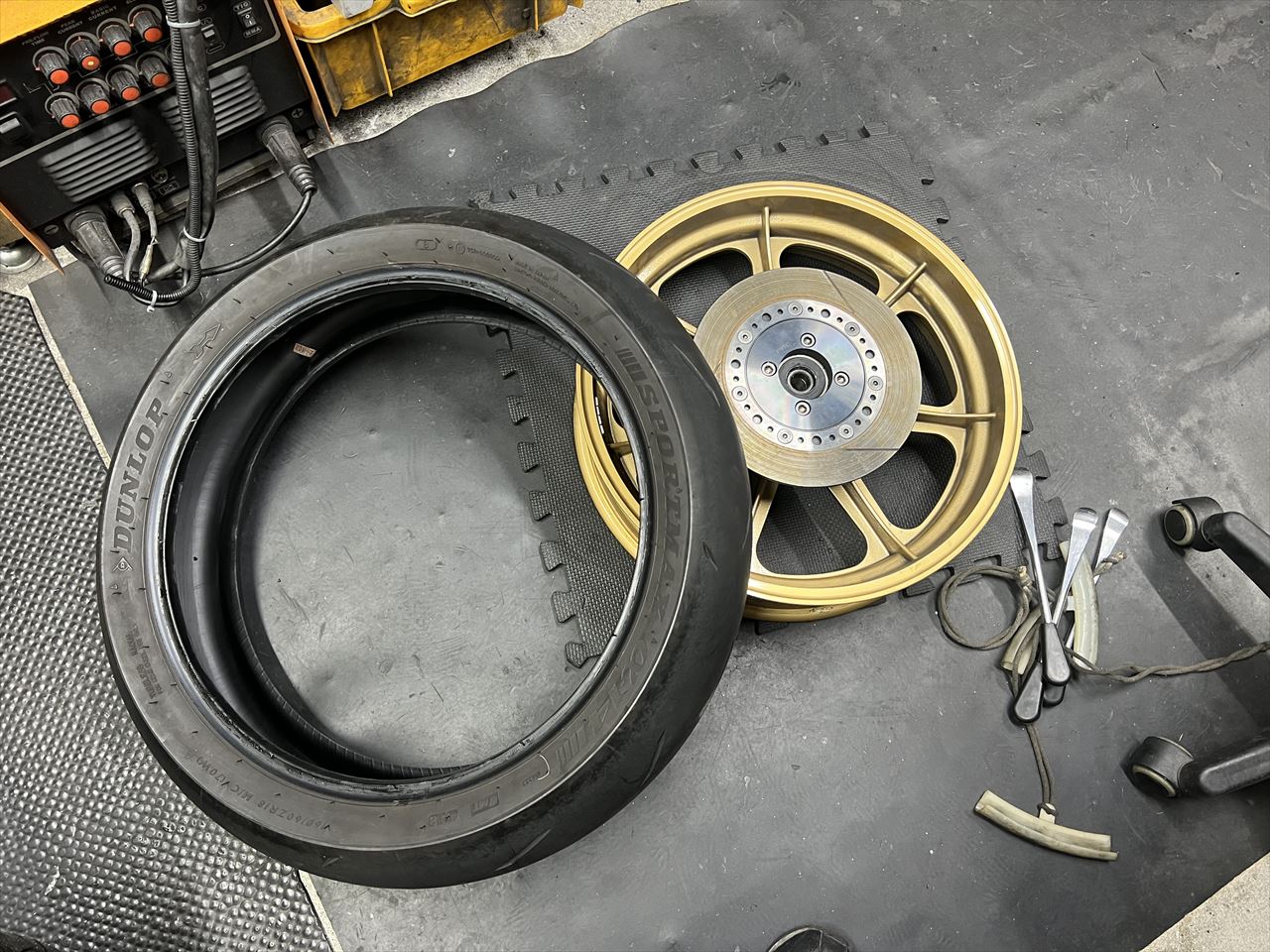 タイヤを外して作業します。