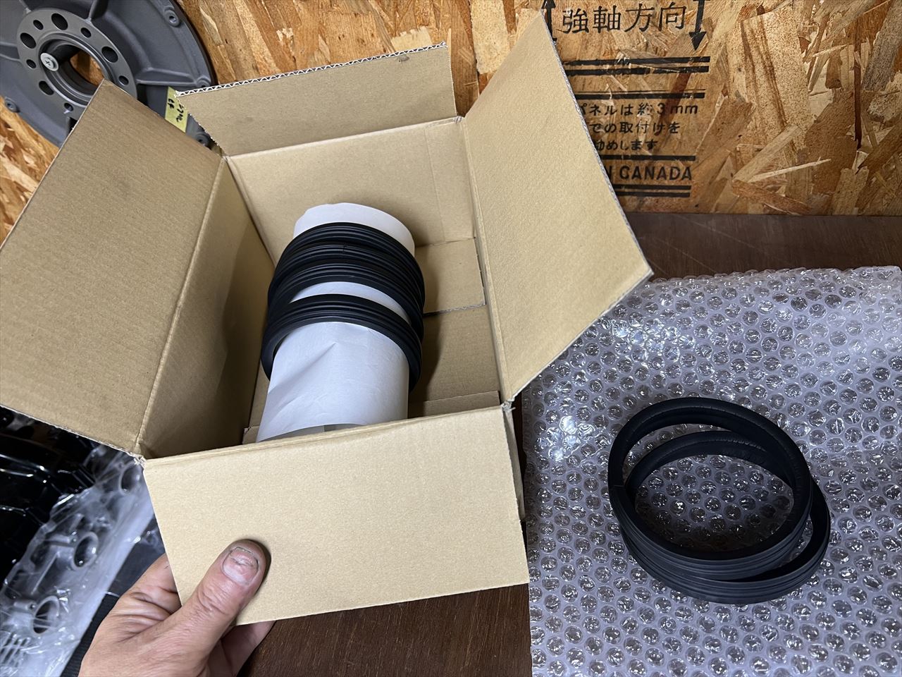 新しいスポンジを取り付けます。このスポンジ、ウチの在庫はもう少ないのですが、また別のメーカーから販売が始まったようです。