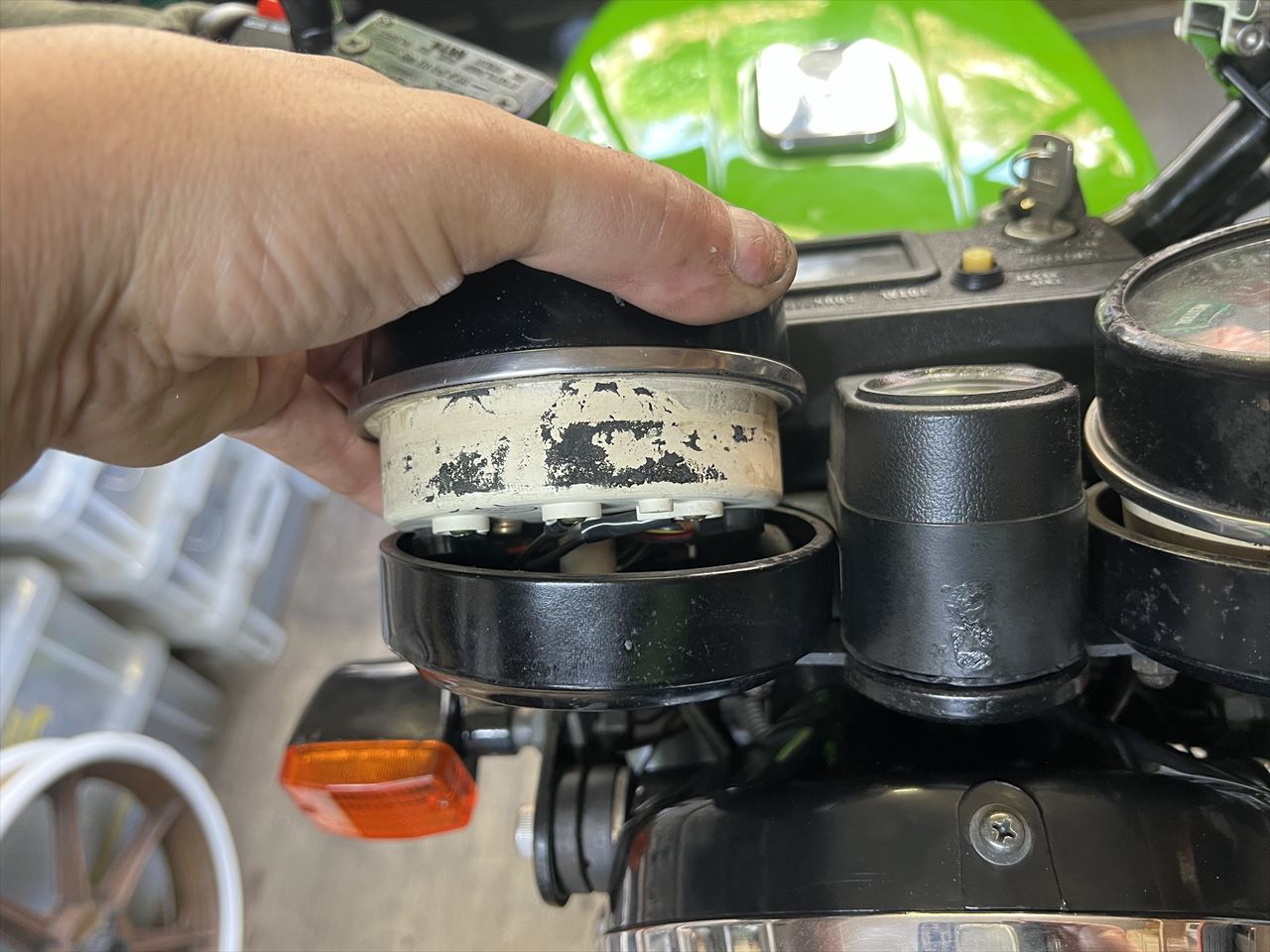 メータースポンジが劣化して縮んでいるので交換します。