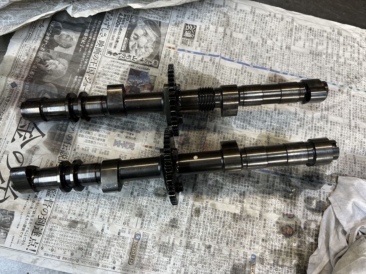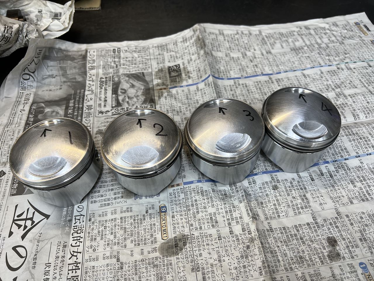 洗浄して組み付け準備完了です。インテークのリセスにはバルブスタンプがありますが、相当ギヤ抜けしてオーバーレブさせていたようですね。今回はミッションも修理したのでギヤ抜けは解消するでしょう。