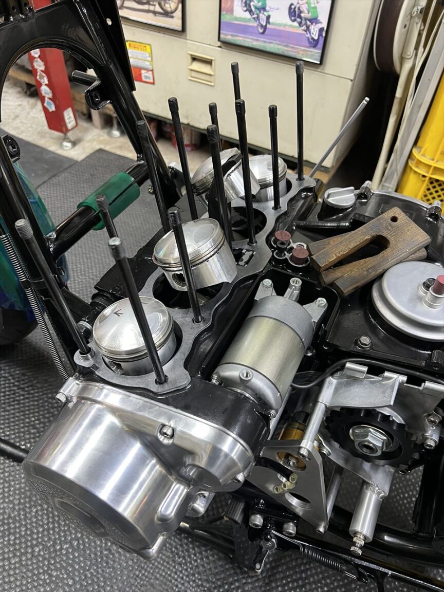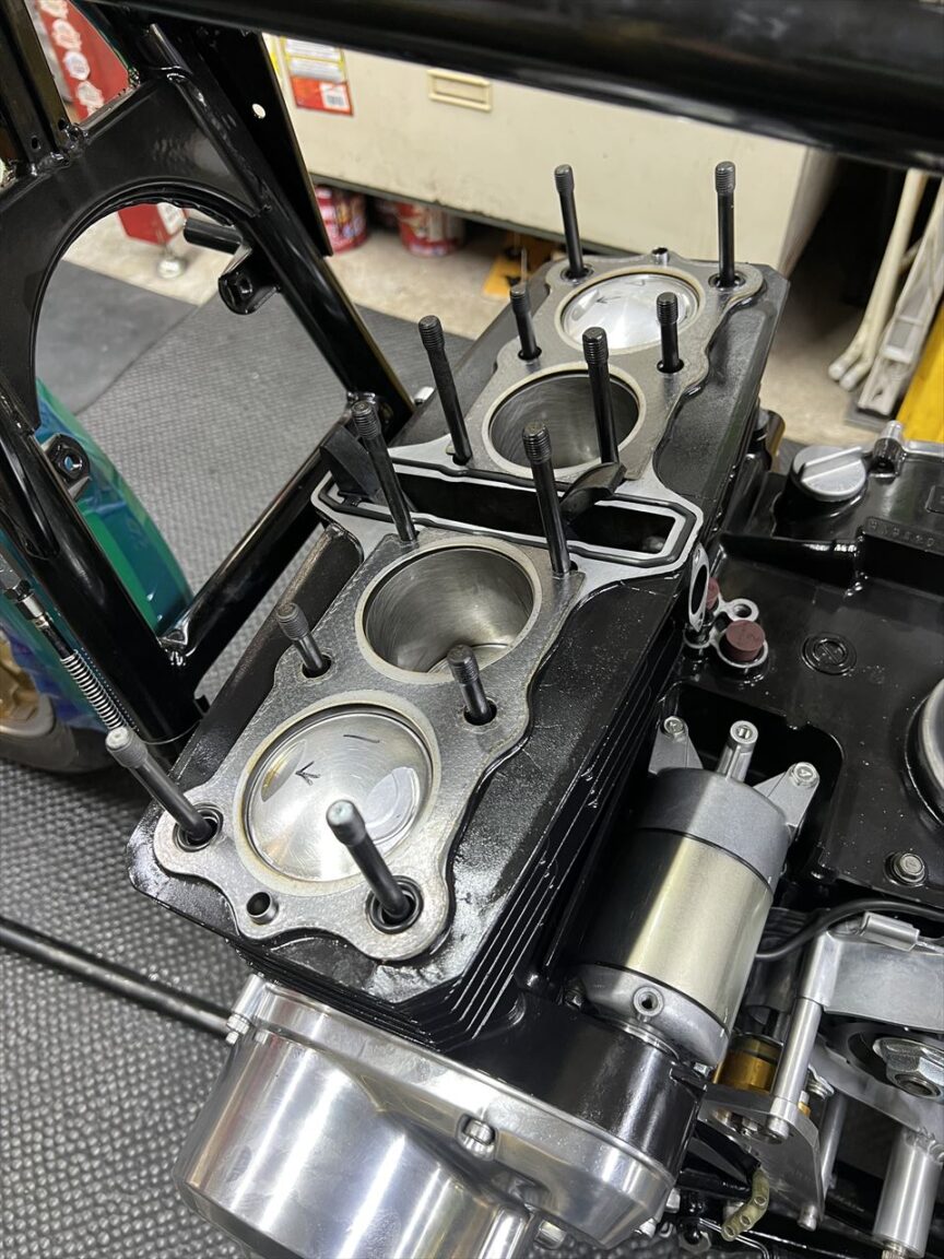 エンジン組み立ての続きです。ワイセコφ72ミリのピストンは状態がいいので継続使用します。