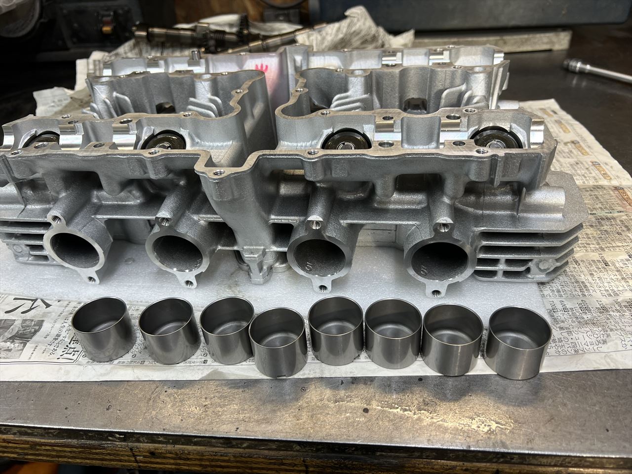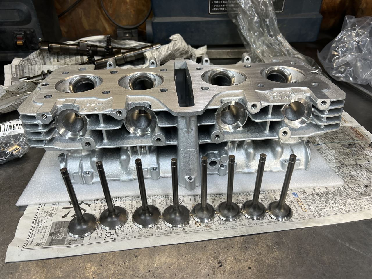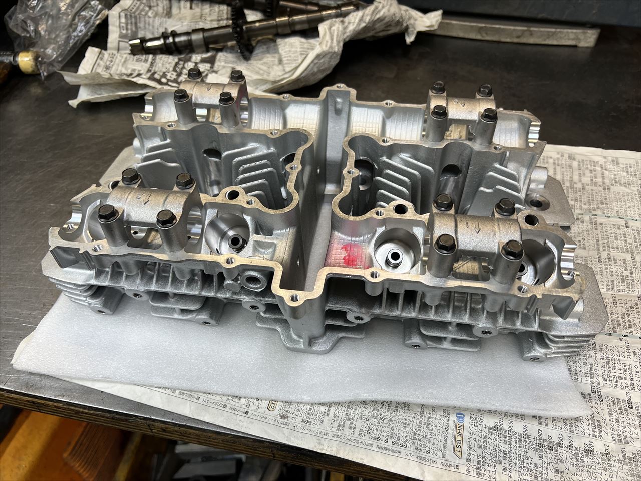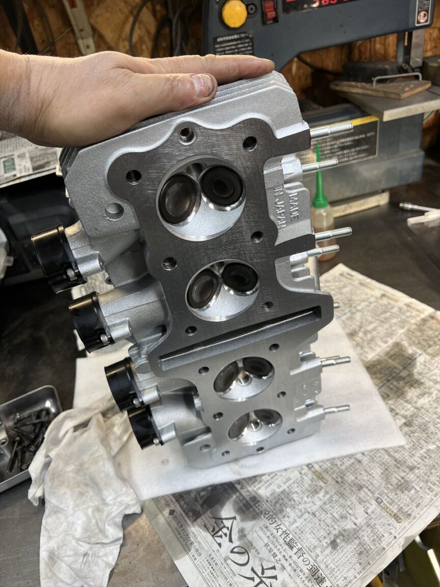 続いてヘッドです。既存のヘッドはリフターホールに異物噛み込みの大きな傷などあったので、お持ち込みのこちらのヘッドを使います。ずっとストックしていた新品だそうです。