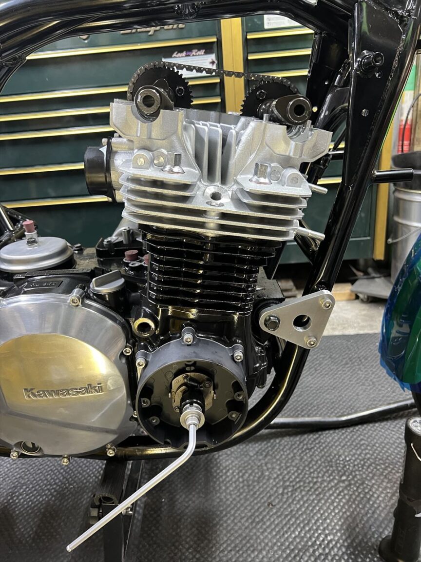 カムチェーンのコマでバルブタイミングを合わせて組み込みます。