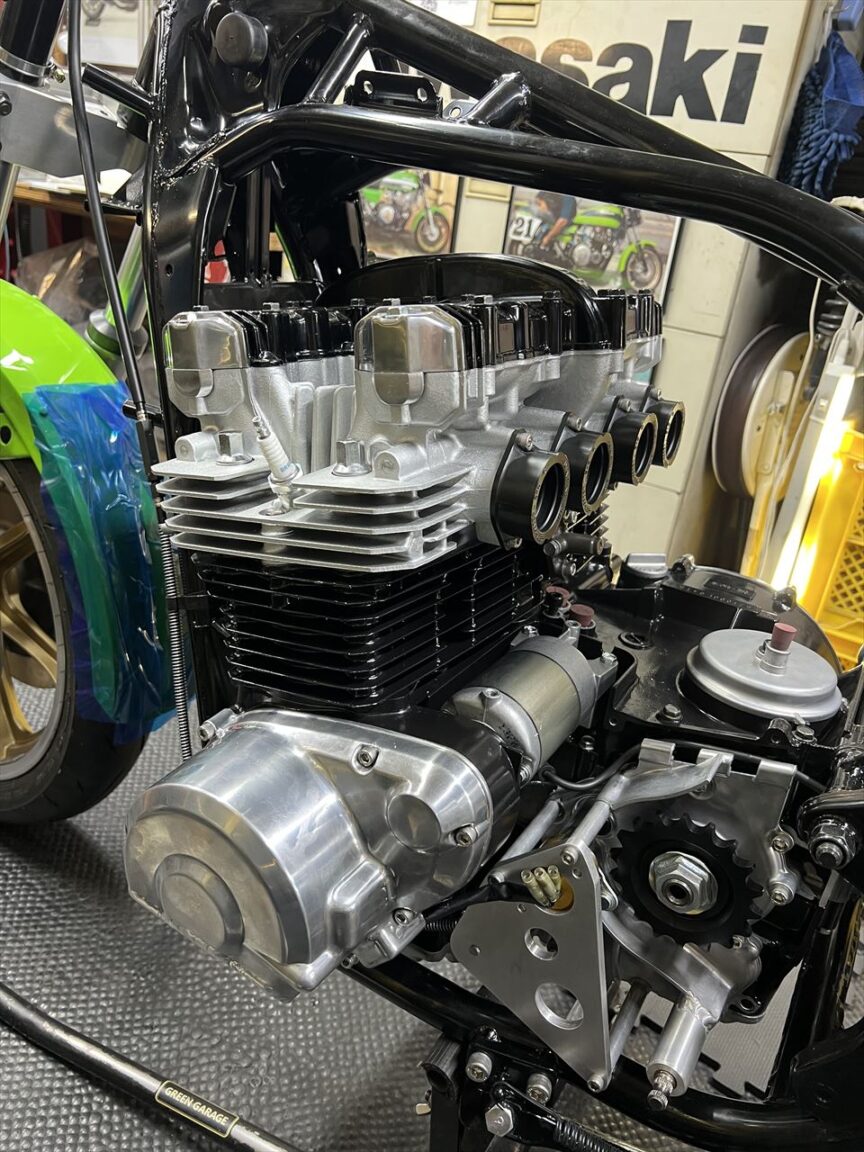 ヘッドカバーを付けてエンジン本体が完成しました。