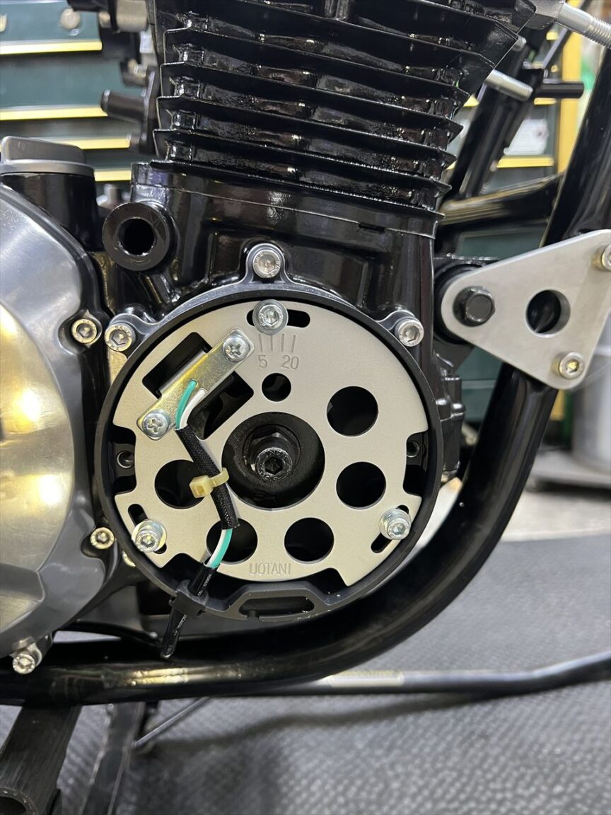 点火系はウオタニSP2に変更。ピックアップコイルを取り付けます。