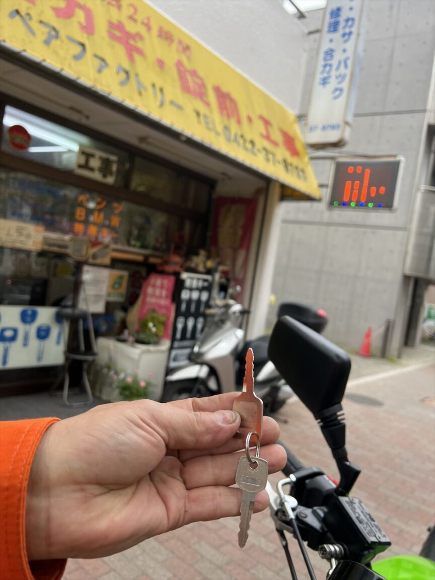 帰りがけにカギ屋さんに寄り、持参したカワサキ純正のブランクキーで合いカギを作りました。
