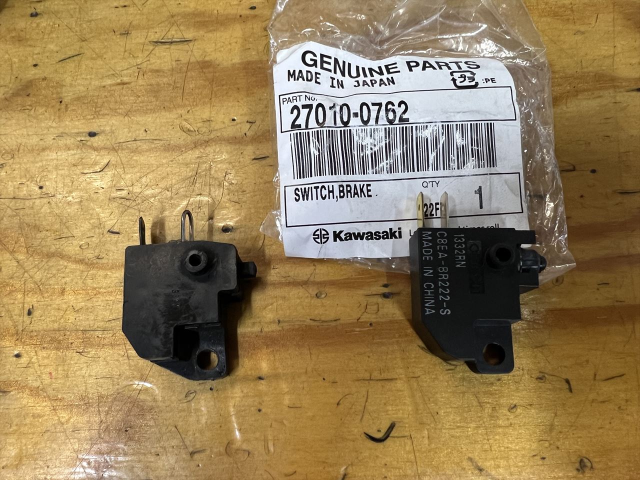 ガレージ戻り部品庫を探したところ、ちょうど適合するブレーキスイッチがあったので交換します。