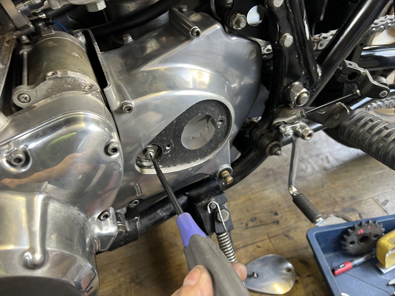 しばらくぶりなのでクラッチの遊びも再調整します。
