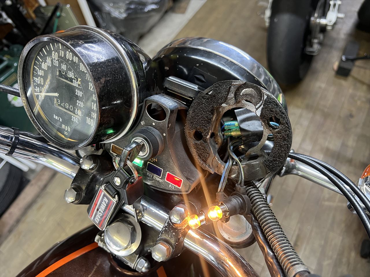 新しいメーター球を取り付け、点灯を確認します。