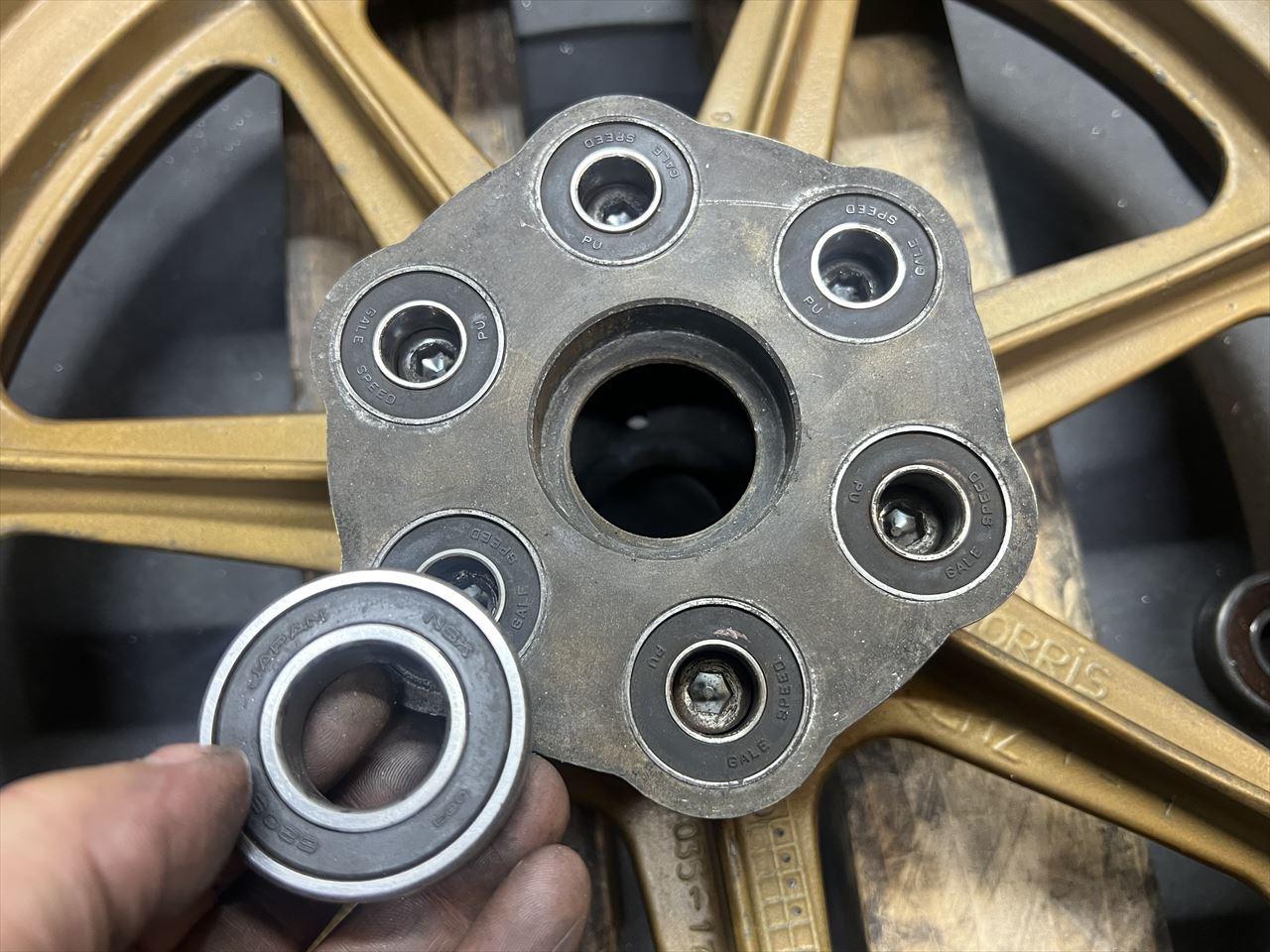 ホイールのベアリングは古いようなので交換します。