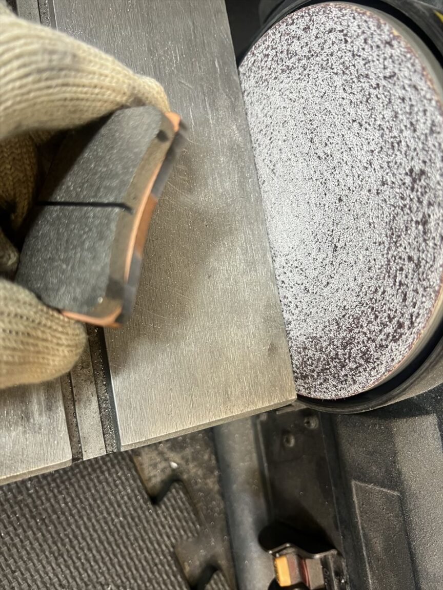 パッドの裏板を少し削ってクリアランスを確保します。