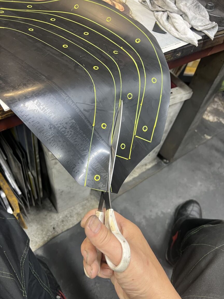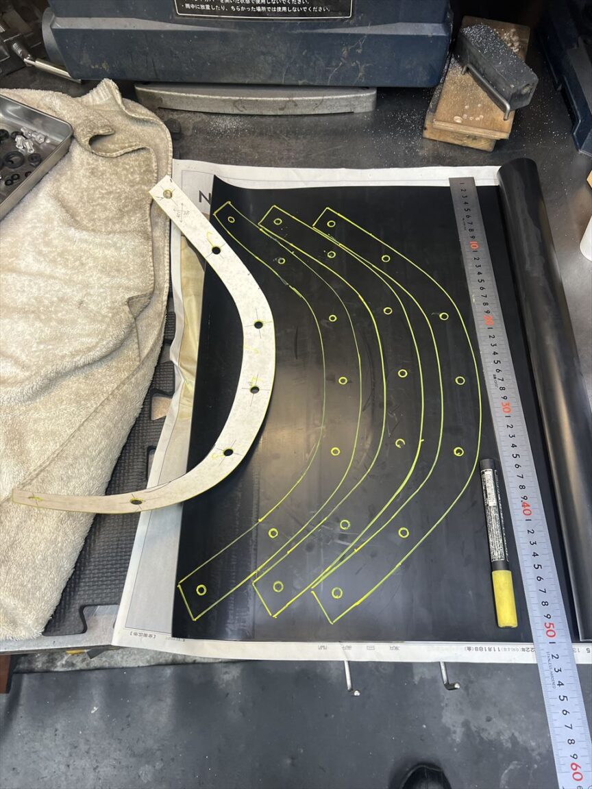 続いてスクリーンモールをゴム板から切り出して製作します。ゴムは対候性のあるNBR製を使用します。