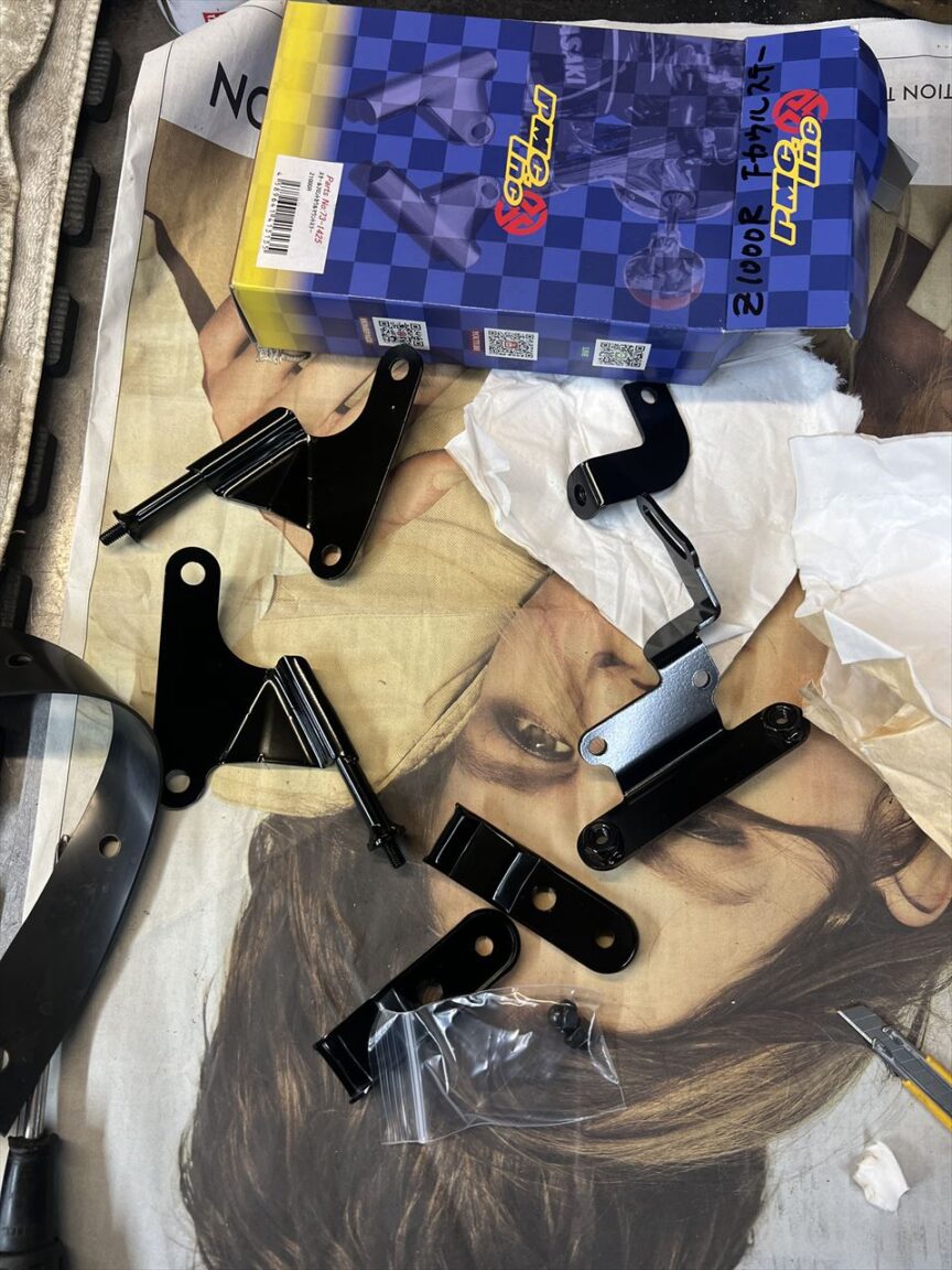 フロントカウルステーはPMC製を使います。材質はスチールでほぼ純正と同形状です。